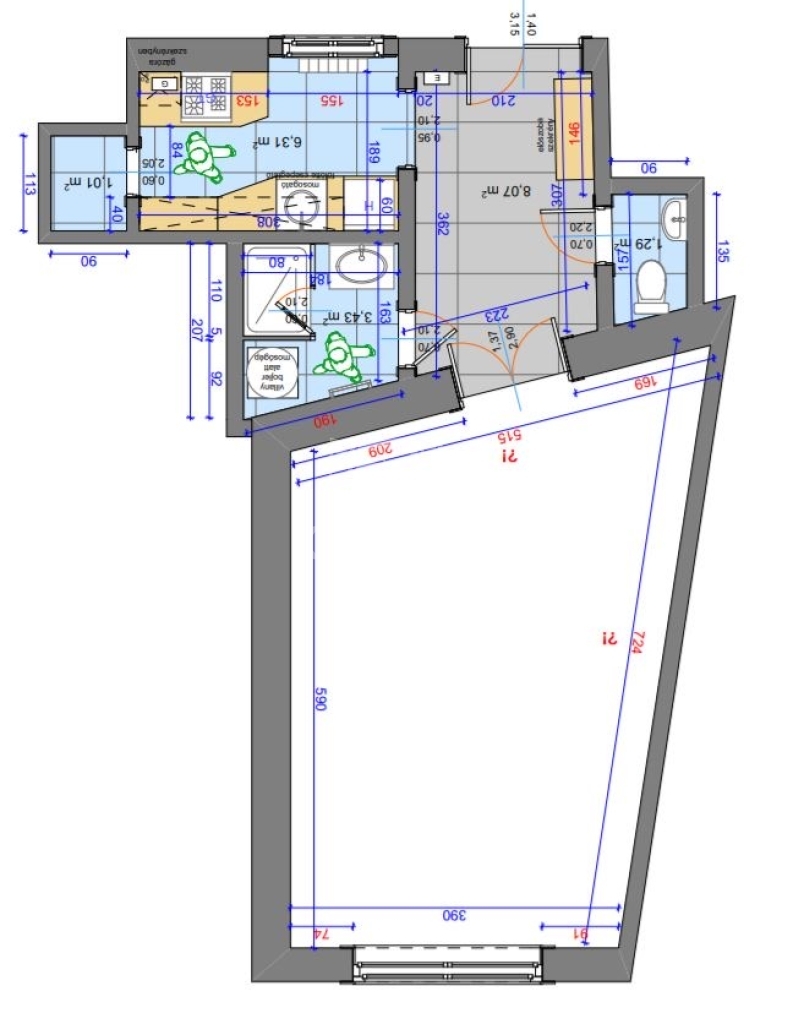 A közel 4 méteres belmagasság egyedi, loft jellegű térérzetet biztosít, amely tovább növeli a lakás tágasságát és világosságát. Az átgondolt elrendezésnek köszönhetően külön nappali, galéria, konyha, valamint különálló fürdőszoba és WC áll rendelkezésre.