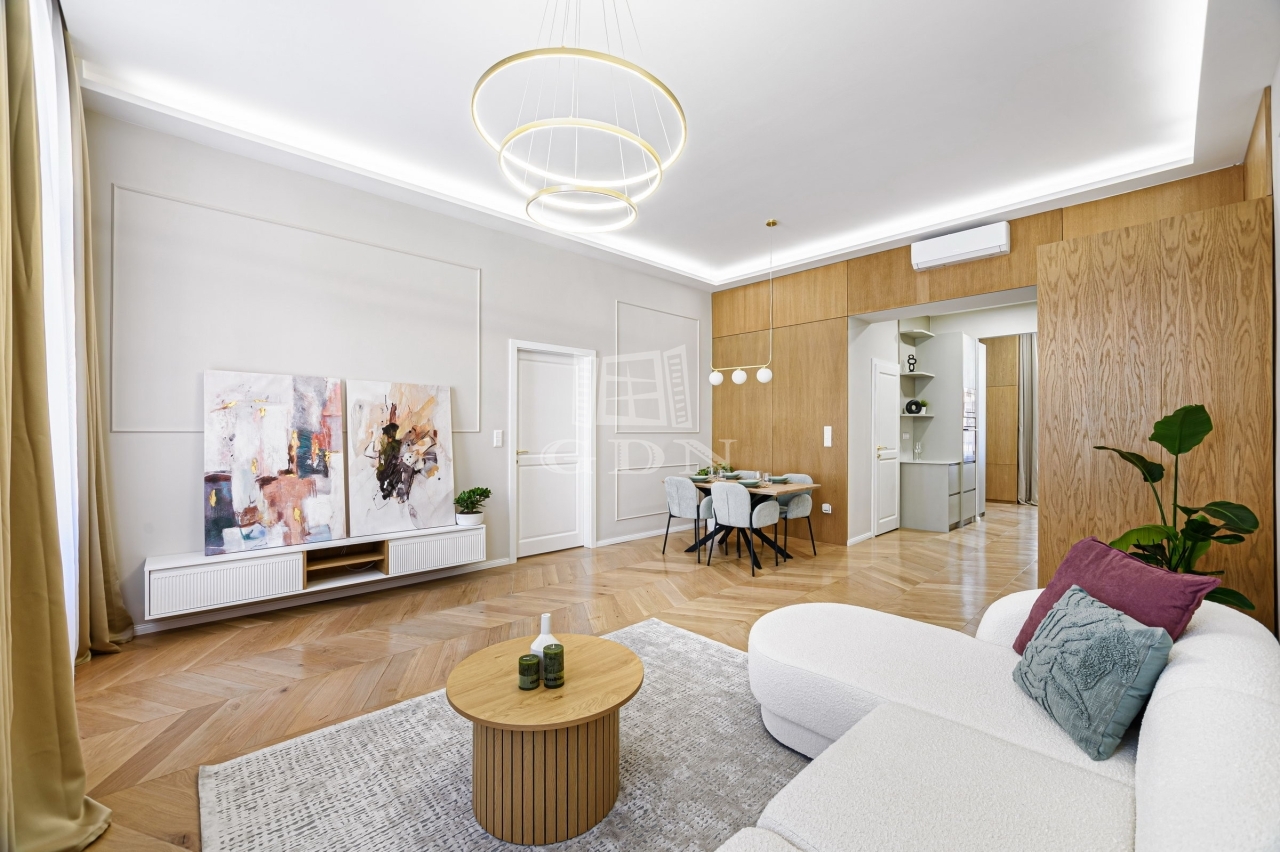 In one of Budapest’s most prestigious streets, Zoltán Street, just steps from the Parliament and Szabadság Square, a bright, 71 sqm, fully renovated and furnished, double-comfort 3-room apartment is for sale on the top (3rd) floor of a well-kept elevator building.