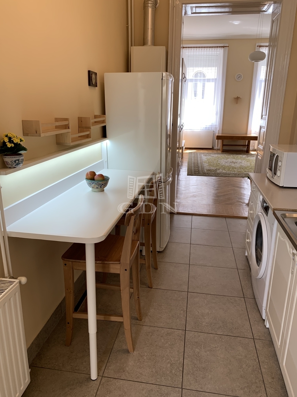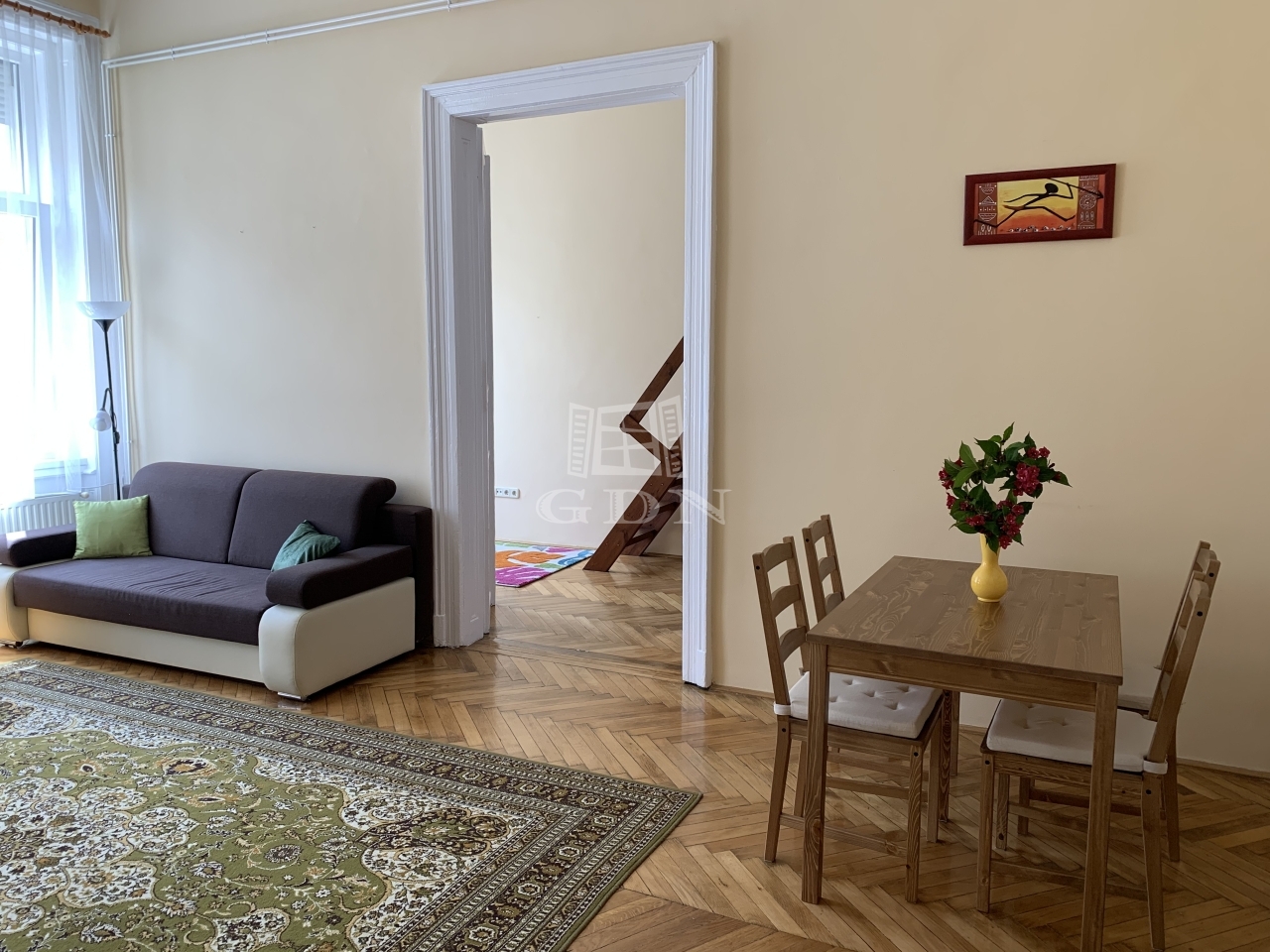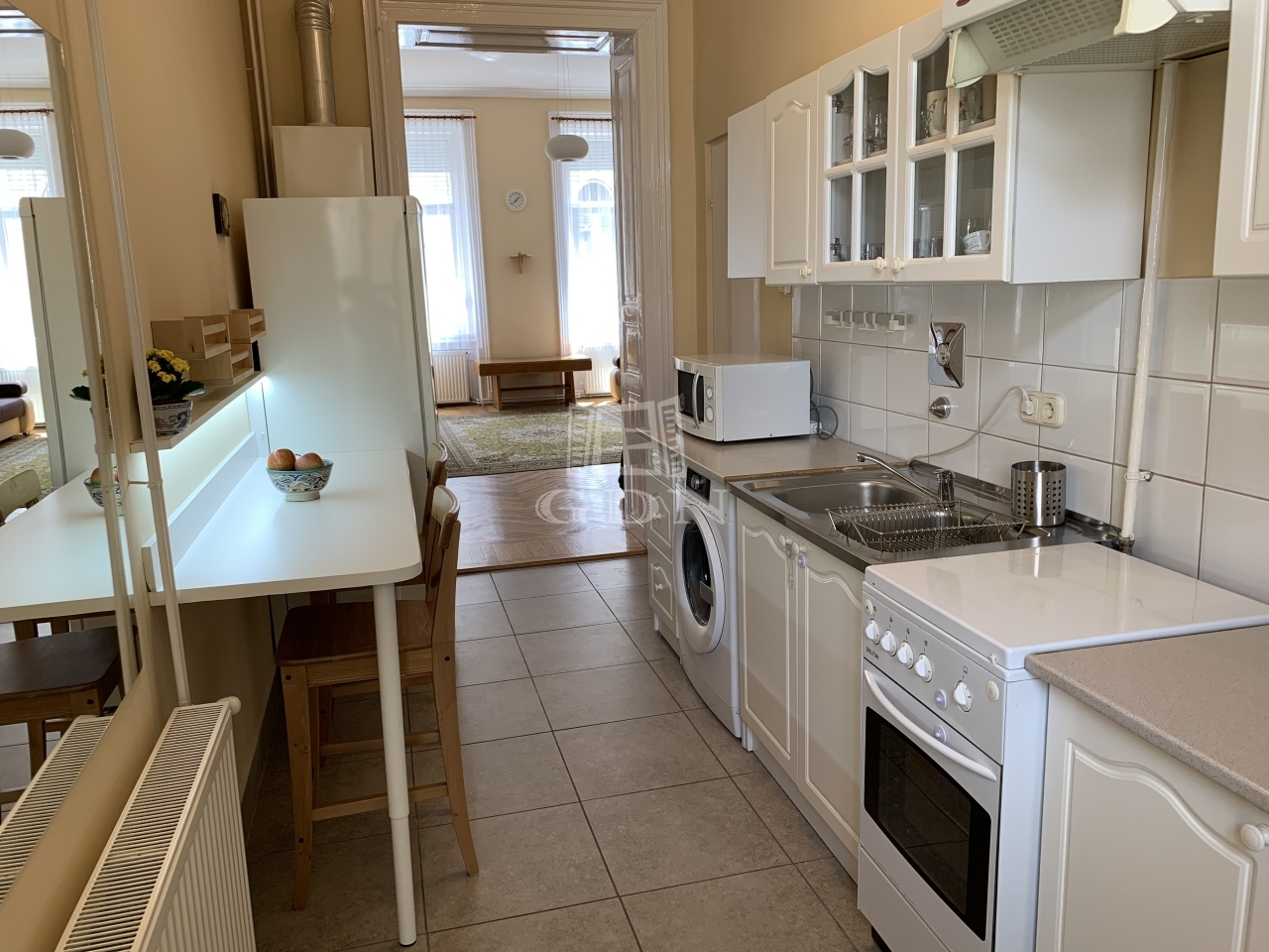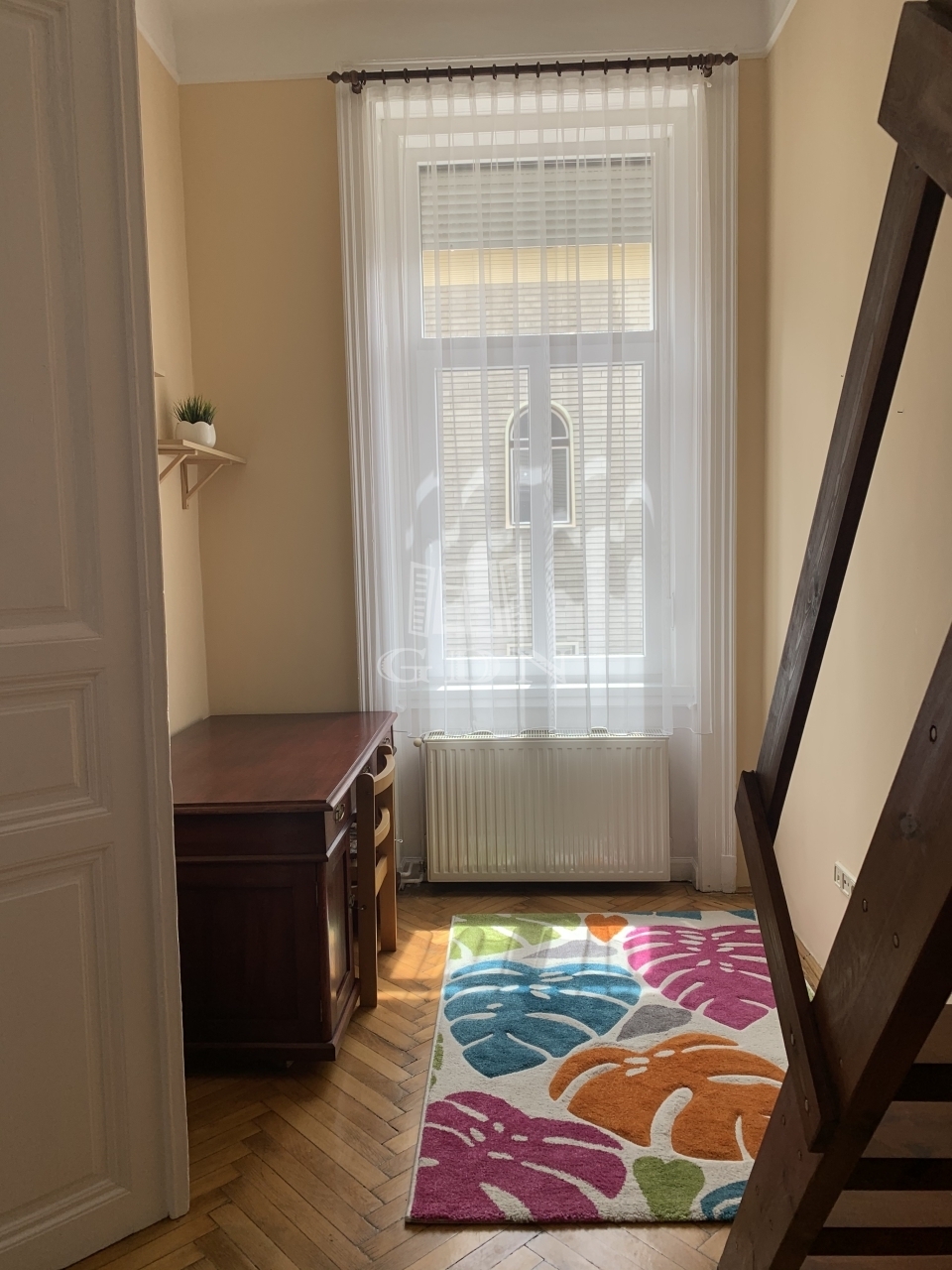 Két tágas szoba, ideális elrendezés jellemzi, mindkét szobából szép utcai kilátás nyílik.