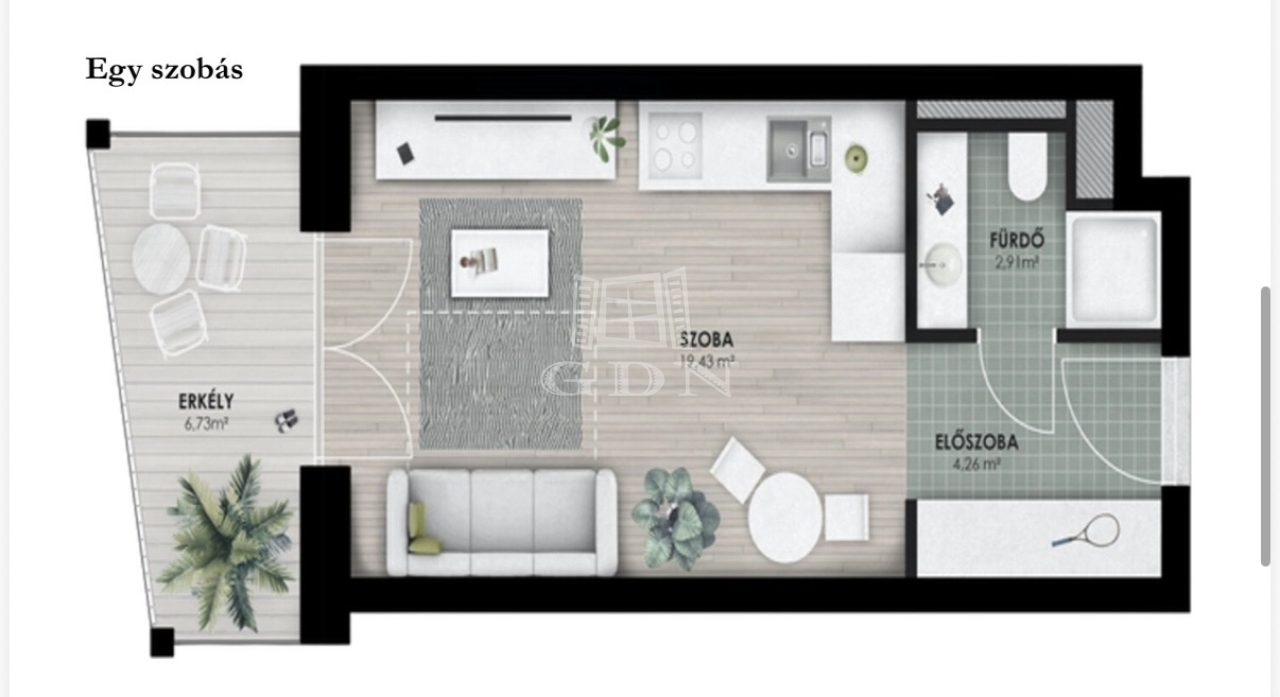 | 27 m2Wohnfläche | 1 Zimmer |