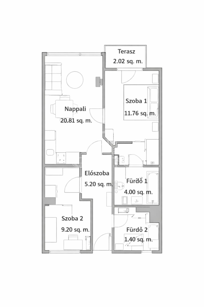 2 m2 Balkon/terrasse