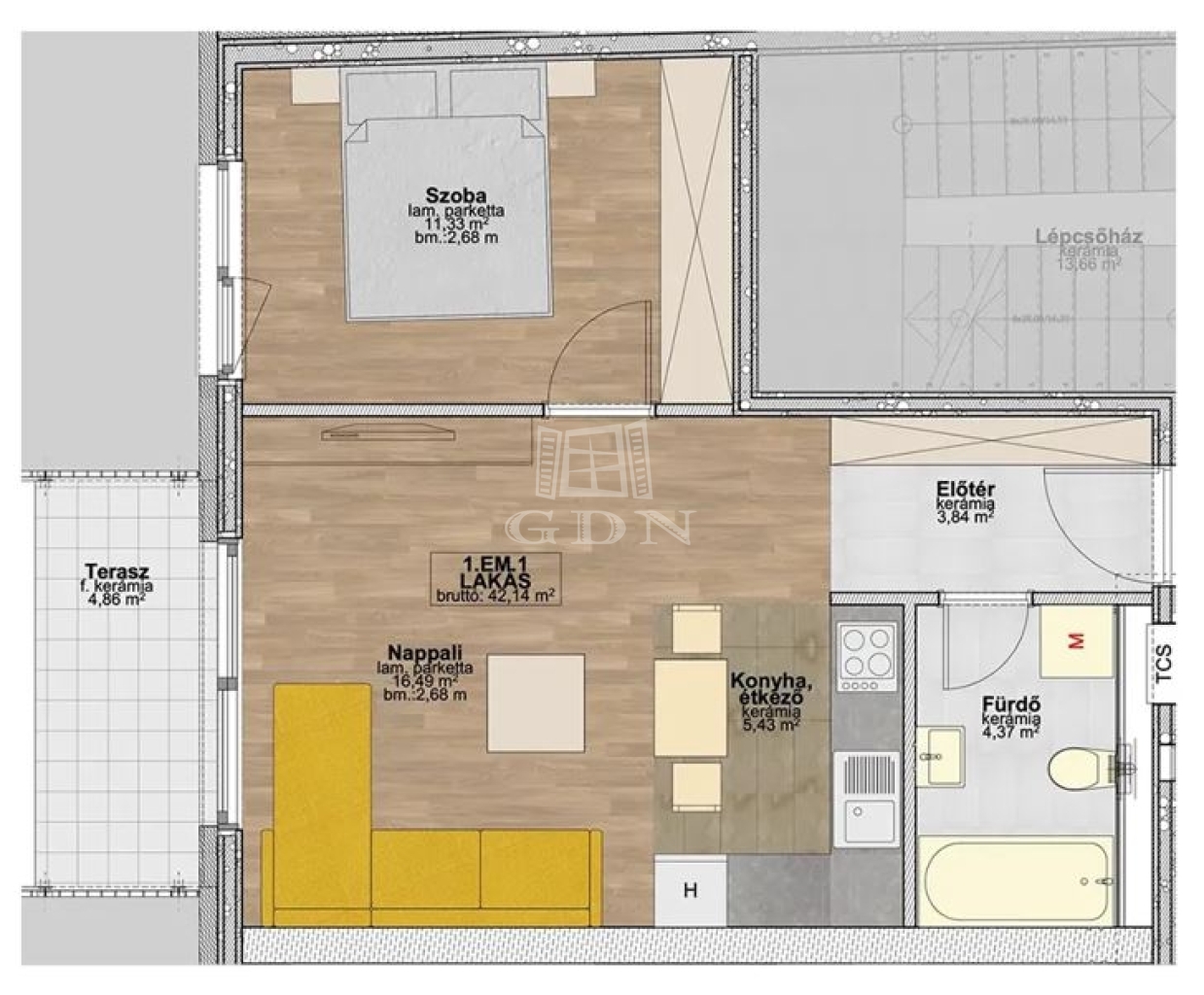 | 42 m2Wohnfläche | 2 Zimmer |