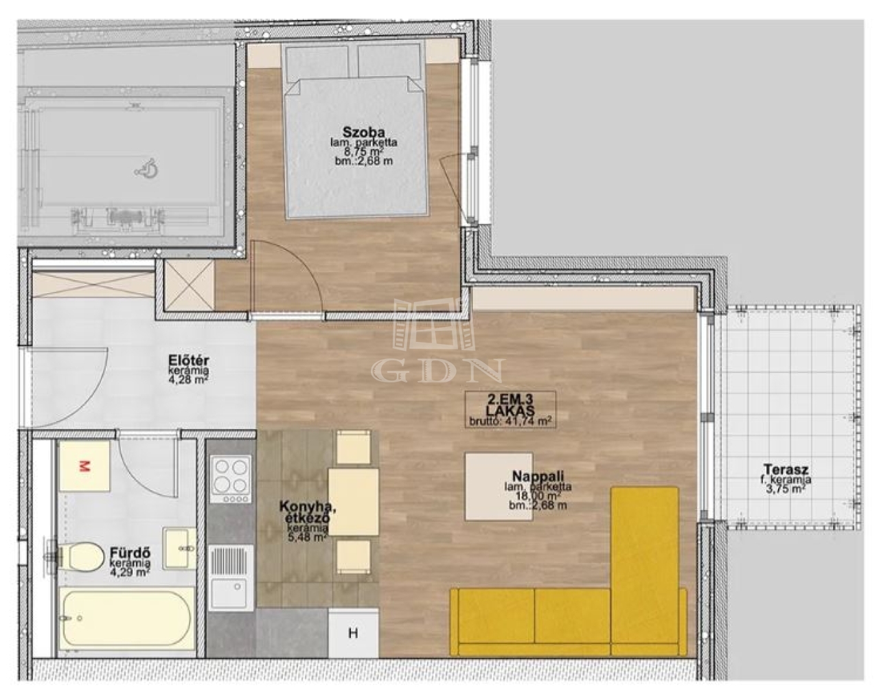 | 41 m2Wohnfläche | 2 Zimmer |