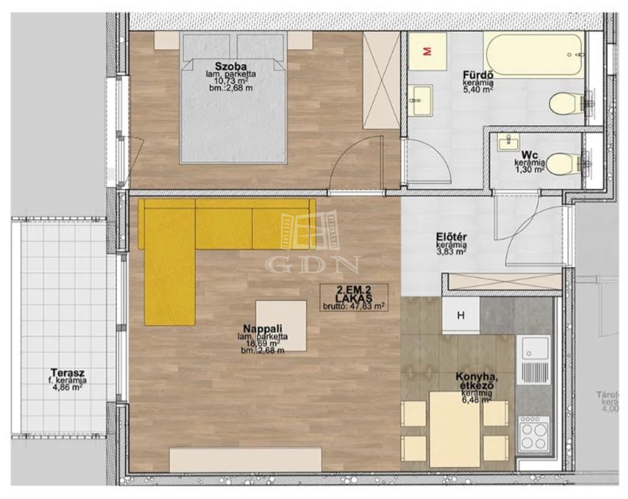 | 47 m2Wohnfläche | 2 Zimmer |