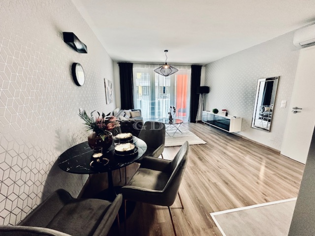 Amerikai konyhás nappali, külön nyíló hálószoba