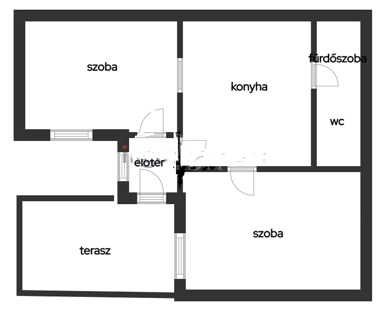 2 külön nyíló szoba, előszoba, konyha és fürdő+WC-ből áll