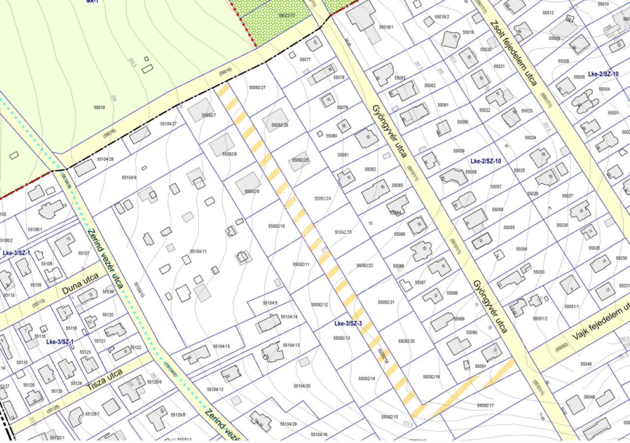Meglévő tervek vannak, melyek a vételár részét képezik, családi ház , illetve kis módosítással 2 lakásos társasház építhető. Ezen tervek alapján már egy családi ház felépült a lakóparkban mely megtekinthető.