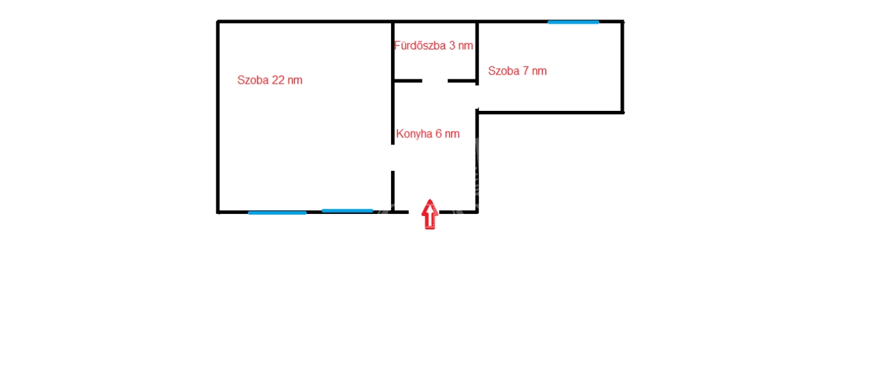 Belépve a 6 nm-es konyhába érkezünk, bal oldalon találjuk a 22 nm-es nappali szobát, jobb oldalon a 7 nm-es fekvő galériával kiépített kisebbik szobát.