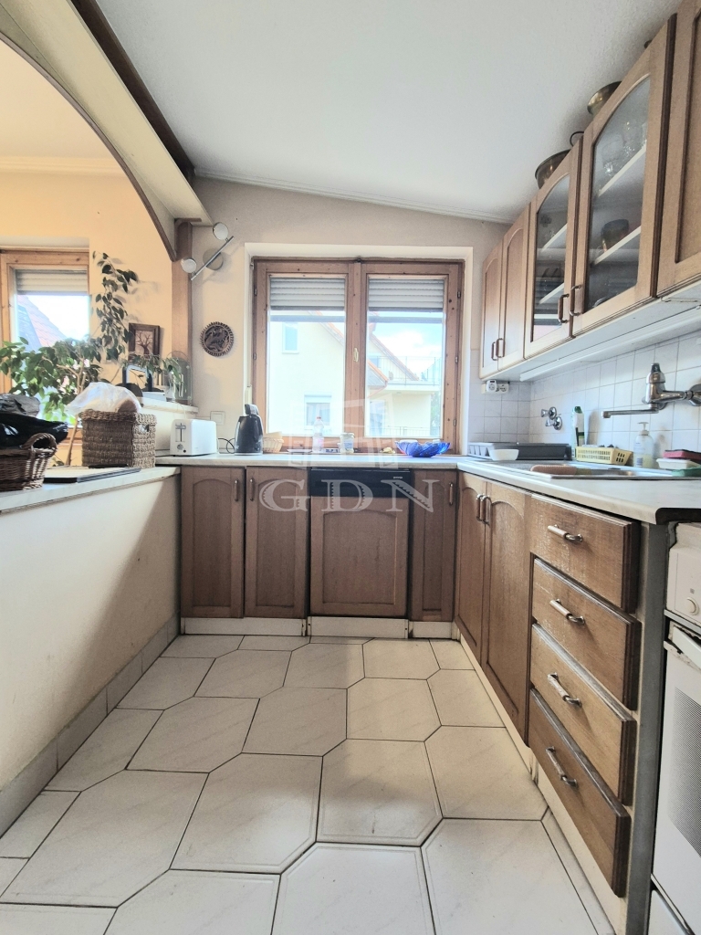 Az emeleti 130 m2-es lakás amerikai konyhával, 4 különnyíló hálószobával, kádas fürdőszobával, erkéllyel került kialakításra.
