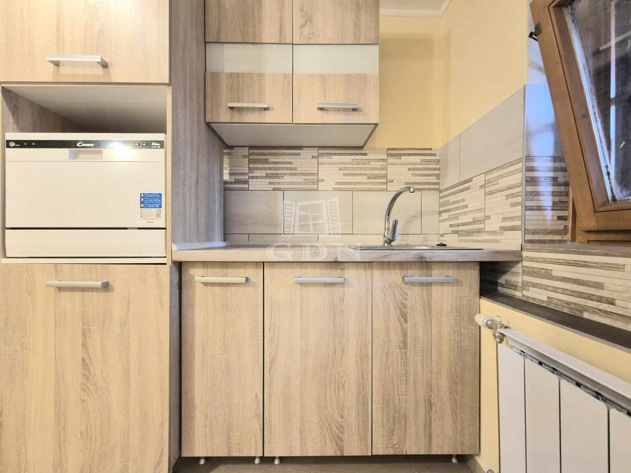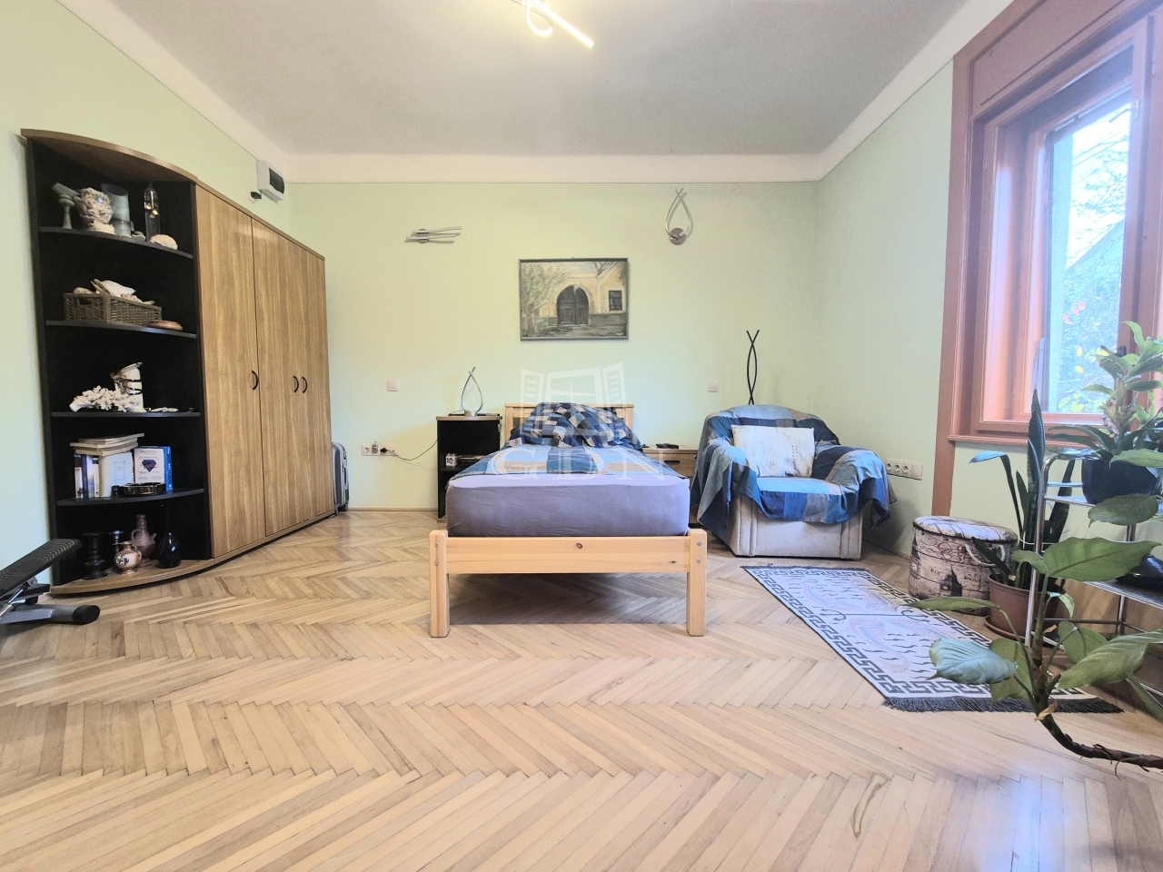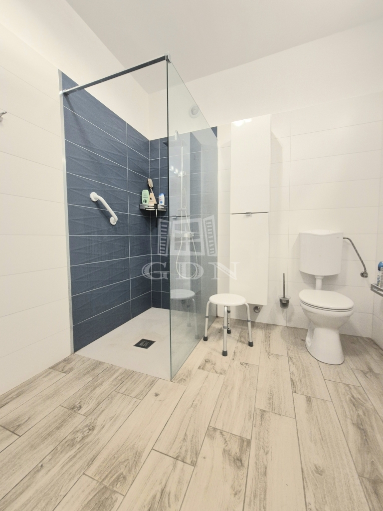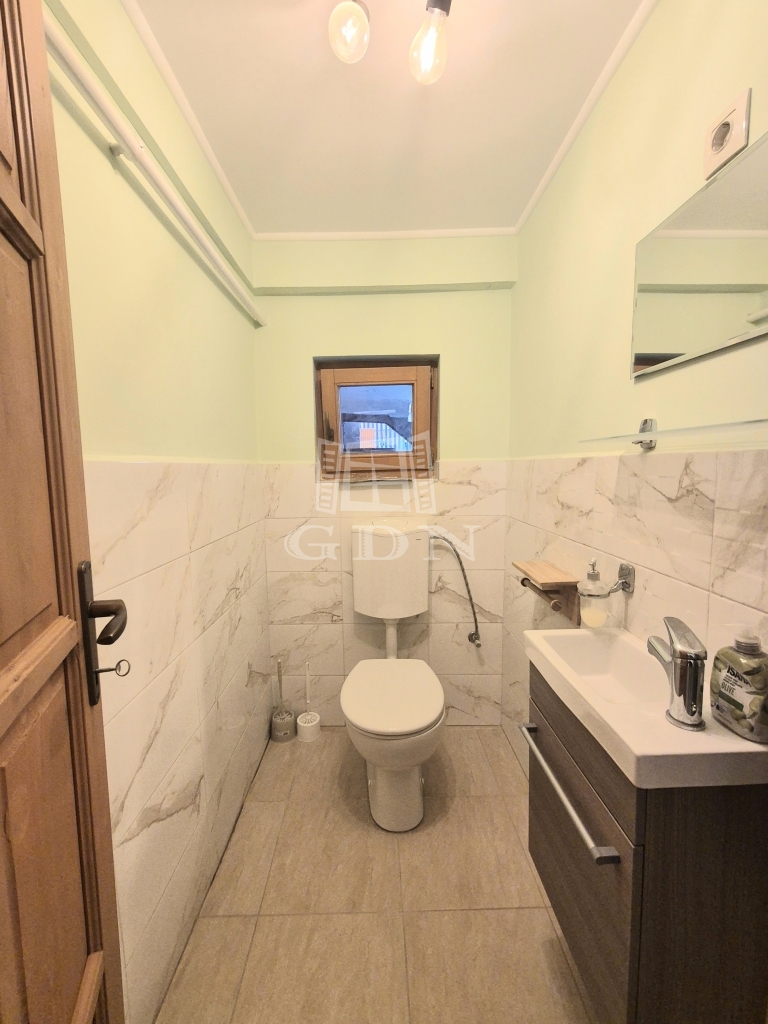 A földszinten lévő, 80 m2-es, két szobás lakás felújított állapotban, korszerűsített gépészettel rendelkezik.