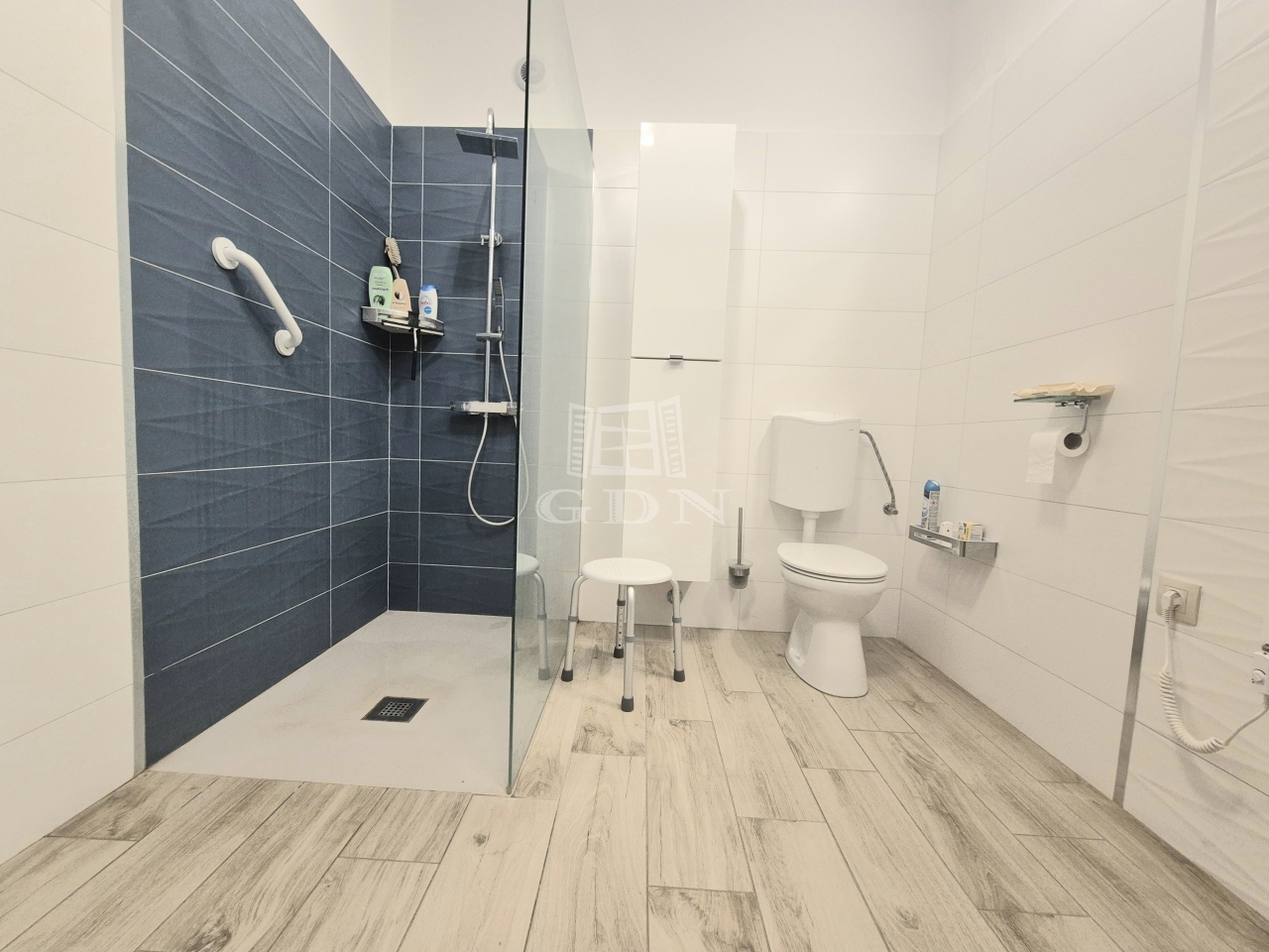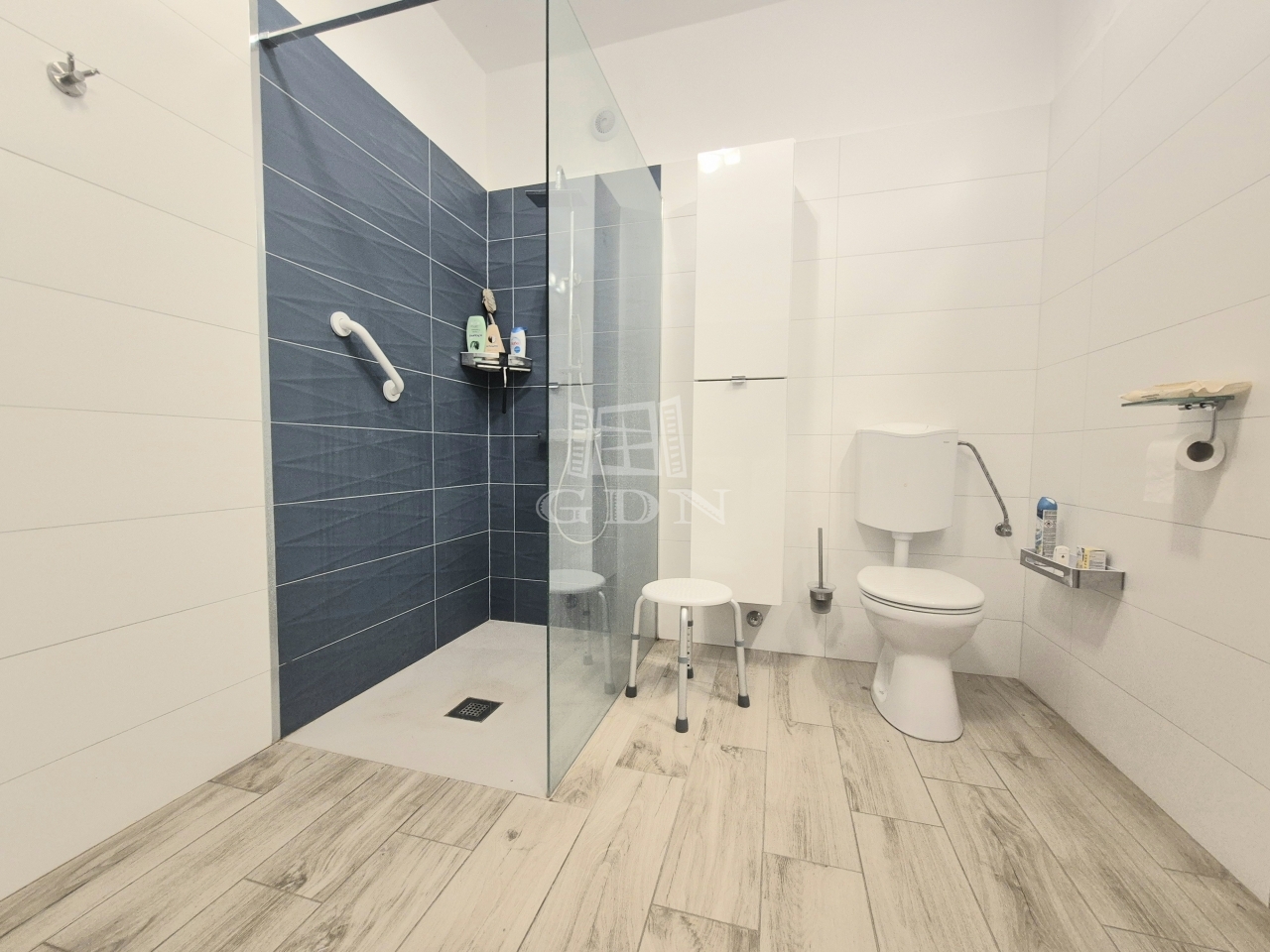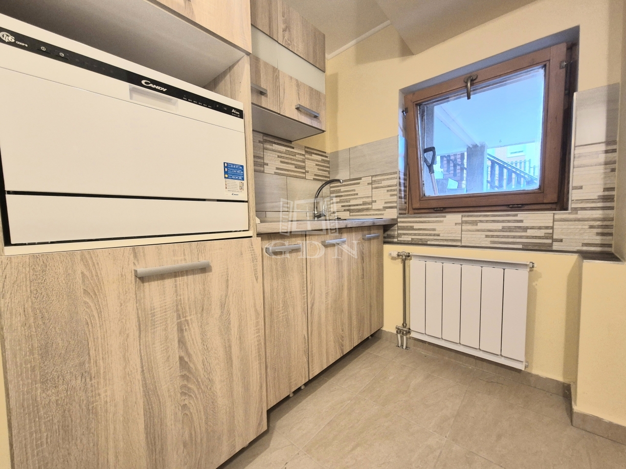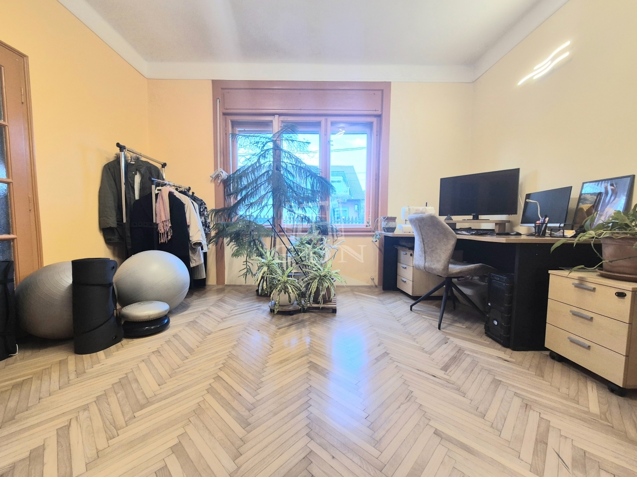 A földszinten lévő, 80 m2-es, két szobás lakás felújított állapotban, korszerűsített gépészettel rendelkezik.