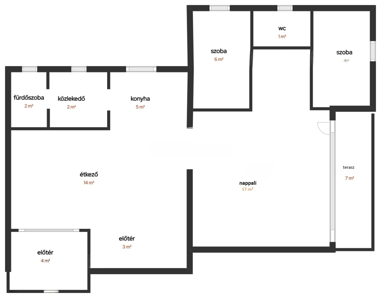 75 m2Alapterület 1 + 3 Szoba