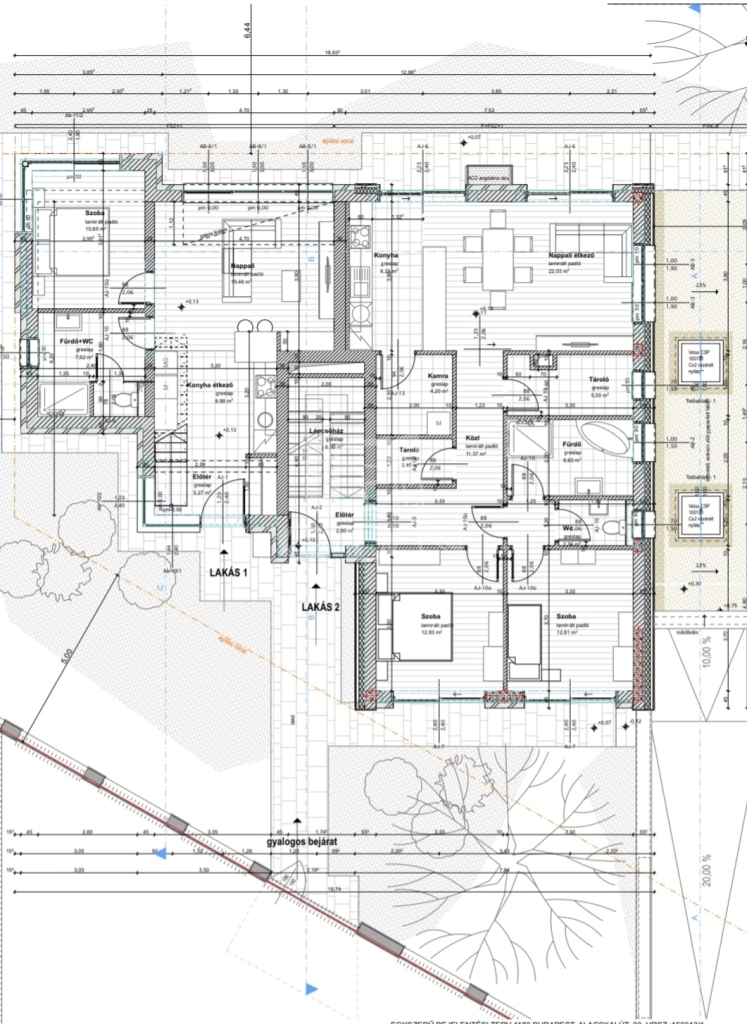 A kellő gondossággal épült, szerkezetkész állapotban lévő, több lakás kialakítására is alkalmas ingatlan szuterén szintjén több autó számára parkolási lehetőség biztosított.
