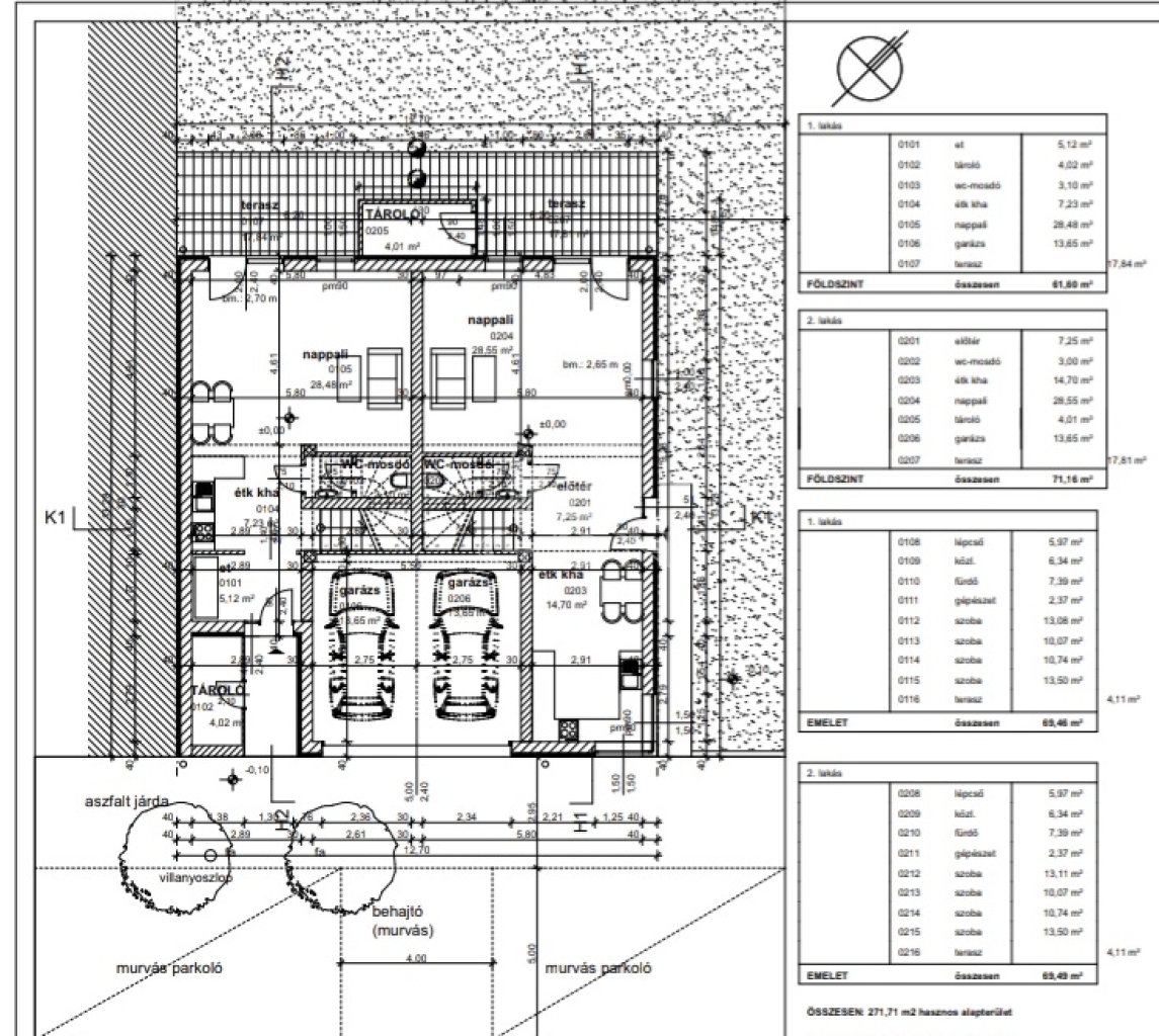 A 2 lakás nagyobb kertkapcsolattal, 141 m2 alapterülettel, földszinten garázzsal,wc-vel ,amerikai konyhás-nappalival, az emeleten pedig 4 hálószobával + fürdőszobával került kialakításra.