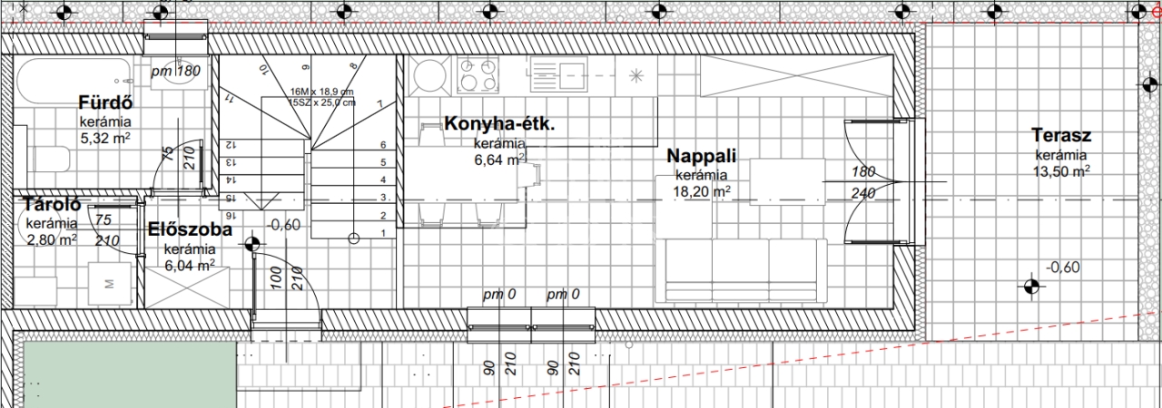 Földszint: nettó 41 m2 + terasz
