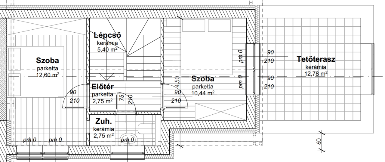 Emelet: nettó 34 m2