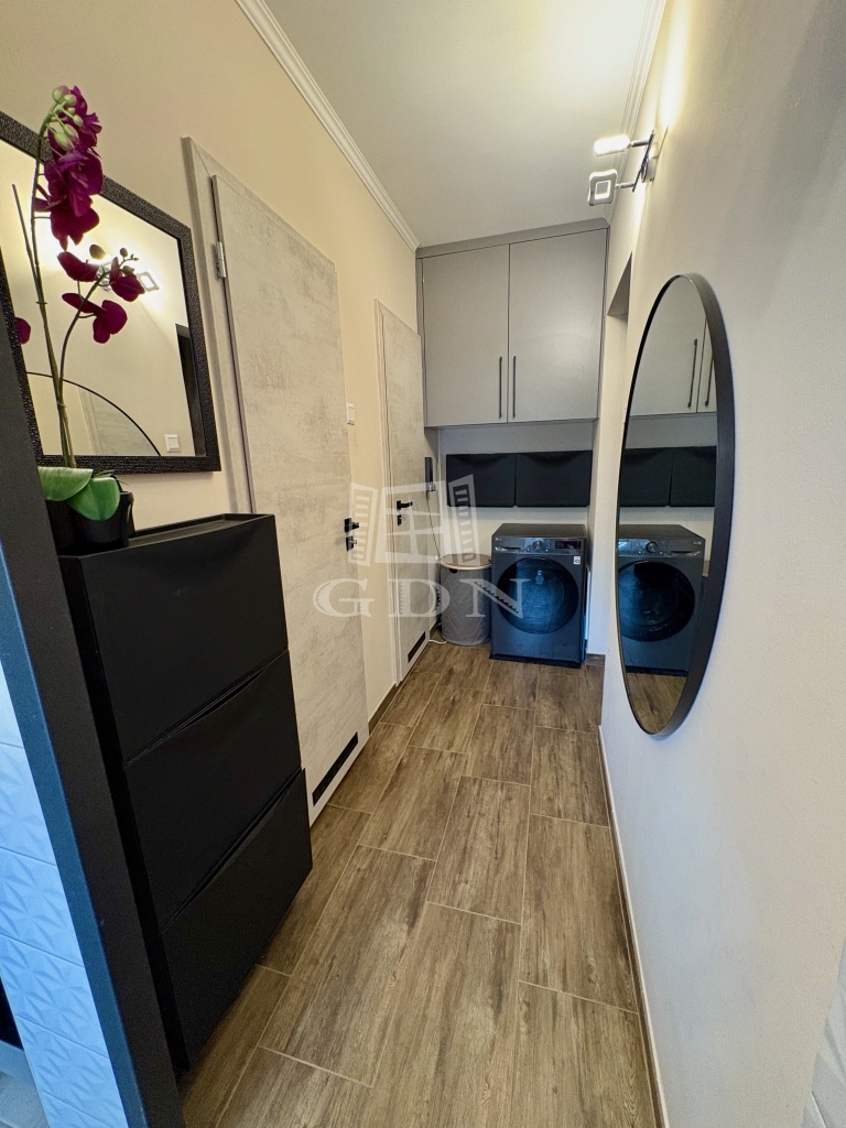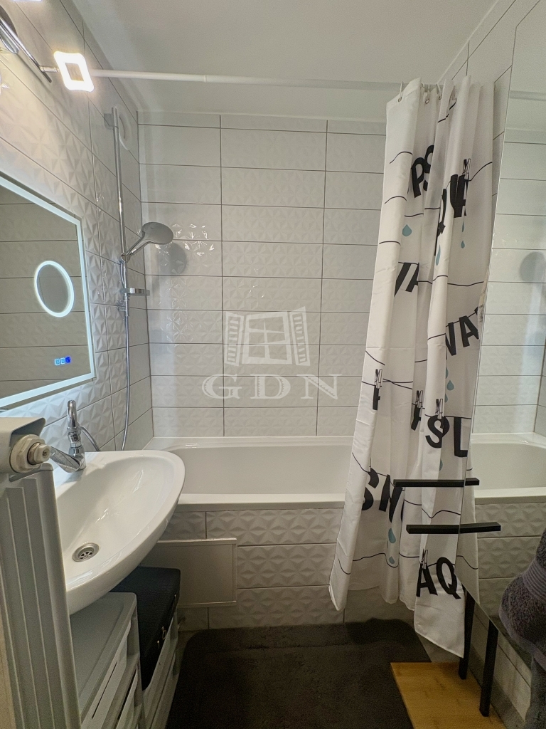 Fürdőszoba teljes felújítása mellett a vízvezeték átépítésre került, ezért a mosógép nem foglalja a helyet, a gardrobe falra került kivezetésre.
