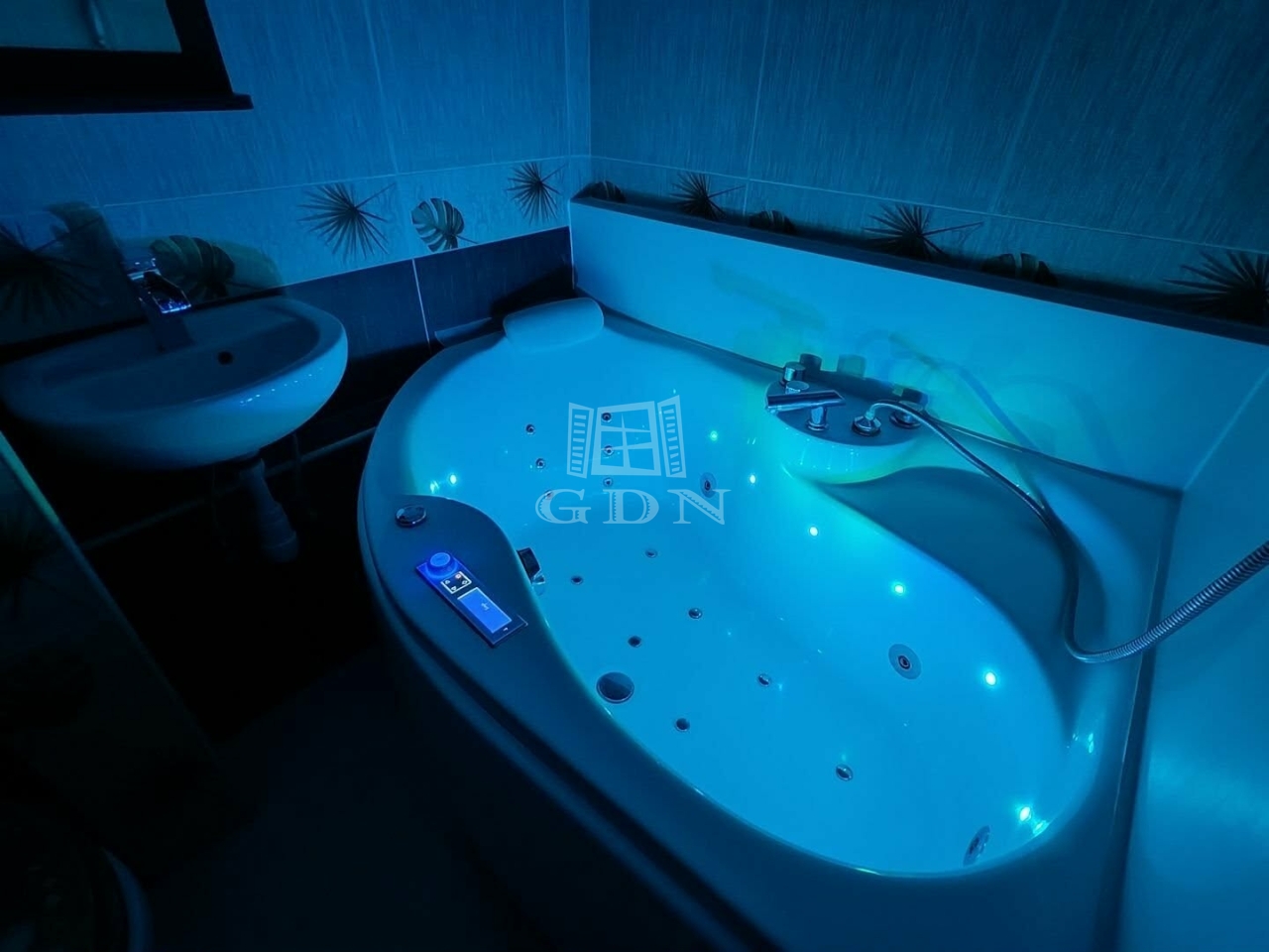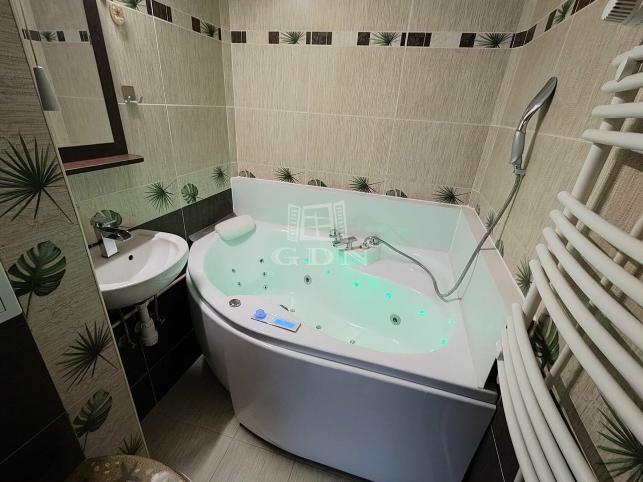 A különálló konyha modern és igényes, a konyhabútor kiváló állapotban van, beépített sütővel és indukciós főzőlappal felszerelt, emellett új mikrohullámú sütő és egy jó állapotú mosógép is helyet kapott. A fürdőszoba új csapteleppel, valamint egy hidromasszázs káddal rendelkezik, amely hangulatvilágítással és rádióval is felszerelt, így a mindennapok kényelmét emeli.