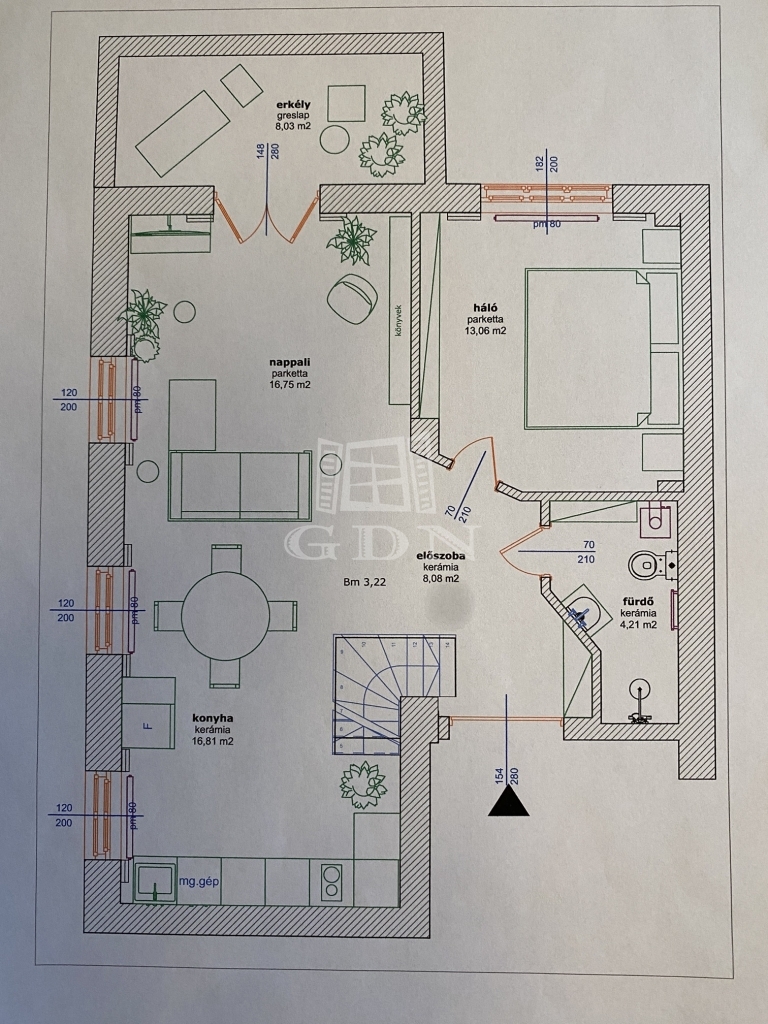 A lakás minden ablaka kertre néz, leginkább délelőtt napos, a terasz DK-i tájolású.
