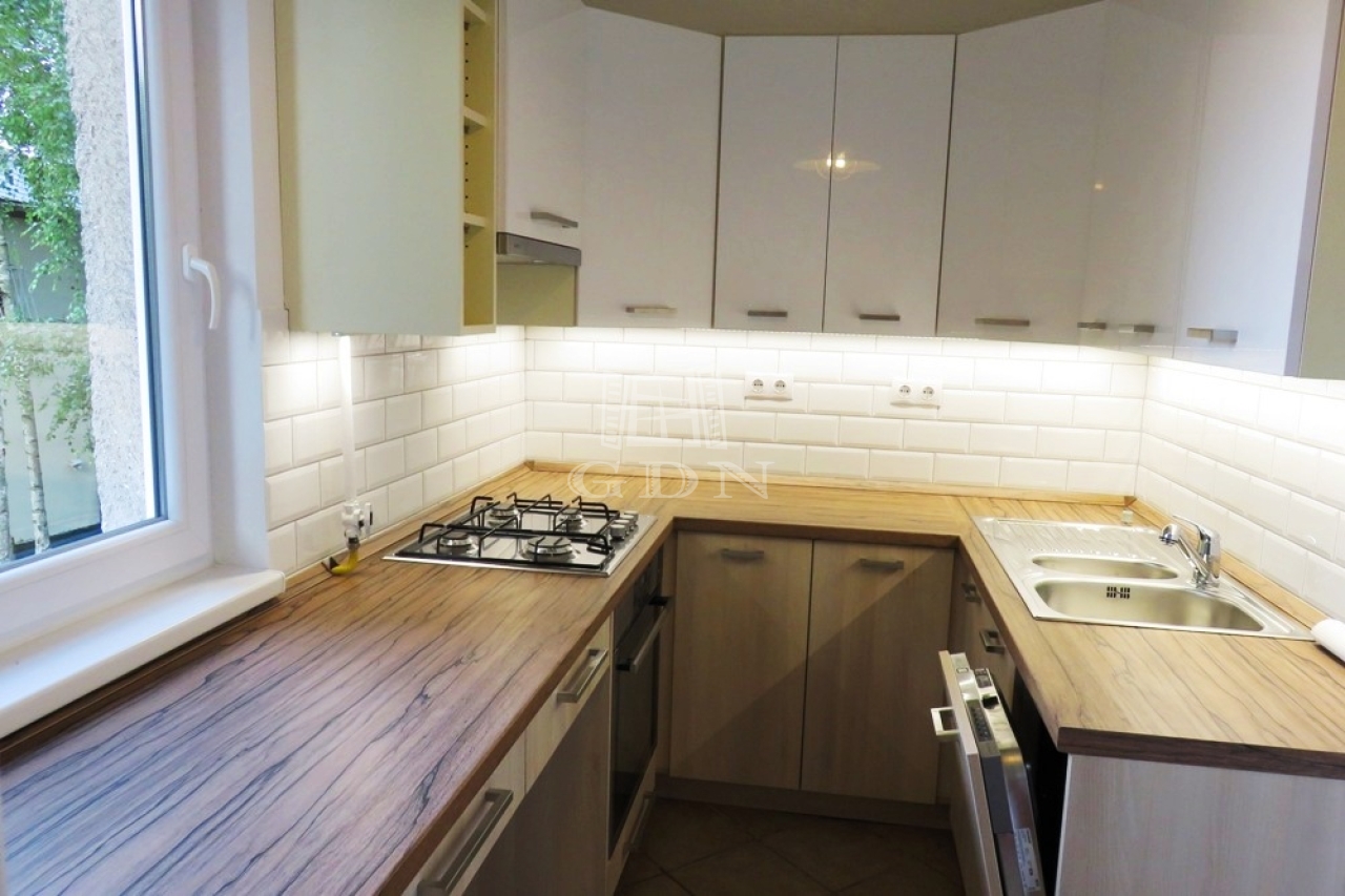Az előszobában nagy gardróbszekrény, a hálóban falba süllyesztett fa könyvespolc található.