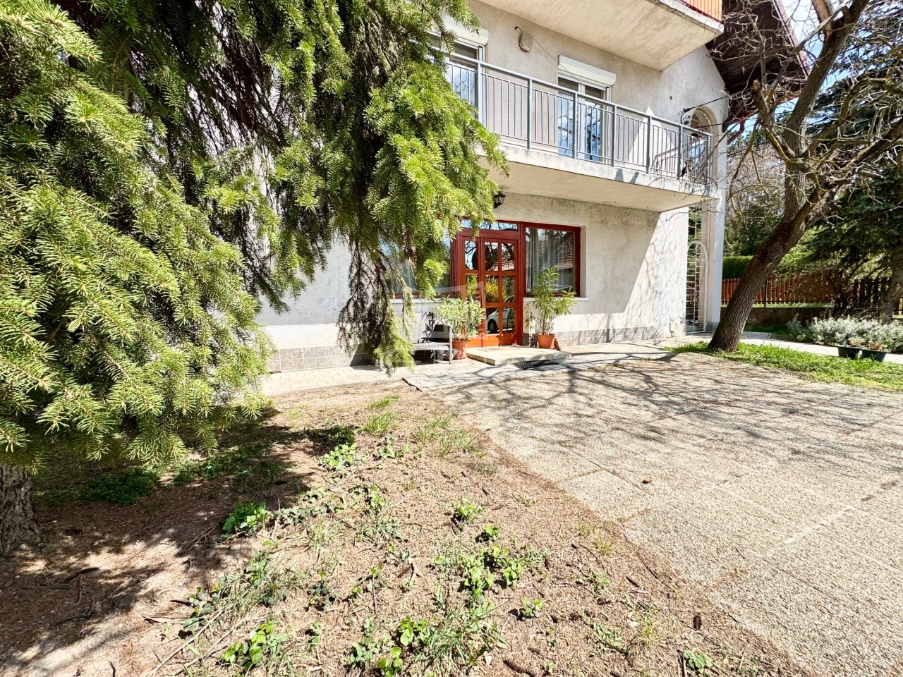 II. kerületben, Pesthidegkúton, kertvárosi környezetében, csendes utcában, 1989-ben épült, 3 lakásos társasházban, önálló helyrajzi számú, saját tulajdonú 389 nm-es ősfás kerttel rendelkező, földszinti elhelyezkedésű 150 nm-es lakóterületű, kiváló elosztású, nappali +3 hálószobás, napos-világos D-NY-i és É-K-i fekvésű, alacsony fenntartású, közösköltség: 15.000 Ft, egyedi mérésű, kombinált gázcirkó fűtésű, jó állapotú, közvetlen kertkapcsolatos házrész/lakás, beépített, gépesített konyhával, telken belüli felszíni gépkocsi beállóval, rendezett kerttel eladó!