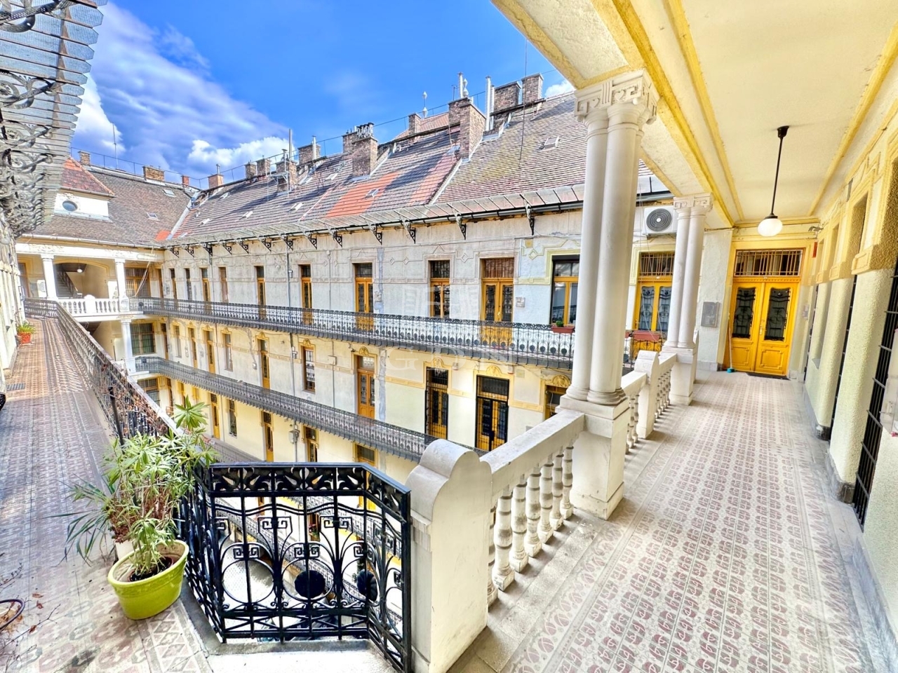 Ráday utca egyik ikonikus, gyönyörű homlokzattal rendelkező liftes épületének legfelső emeletén vált eladóvá, ez a kiváló adottságokkal rendelkező, udvarra néző, csendes lakást.