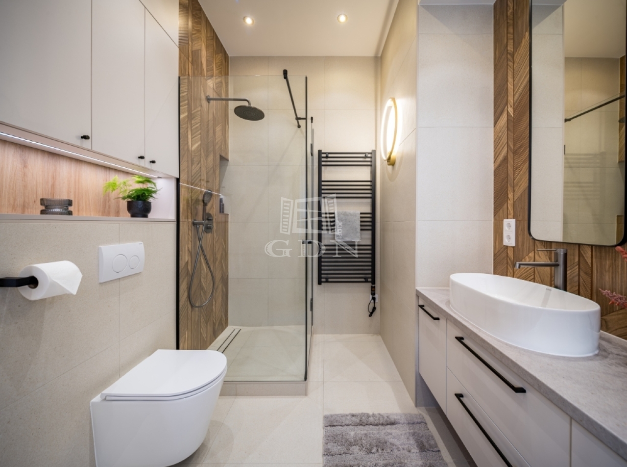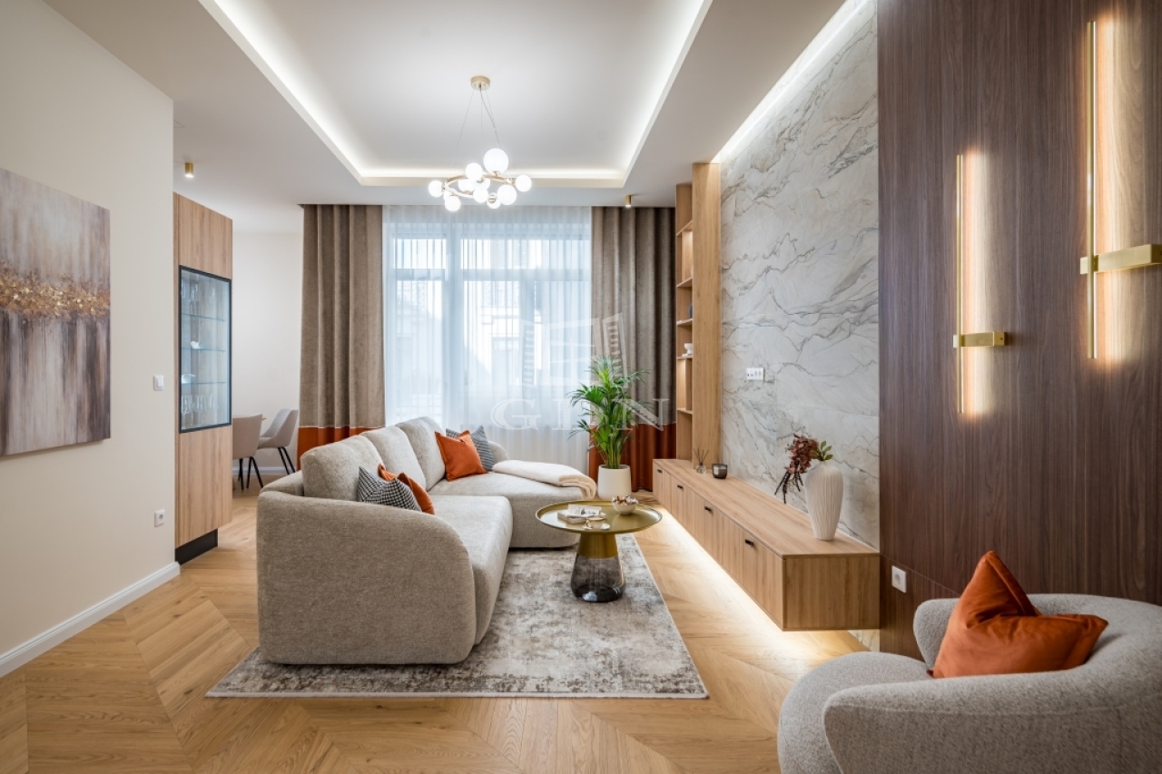 The apartment has been fully renovated, featuring modern interiors and offering a harmonious combination of functionality and high-quality craftsmanship.