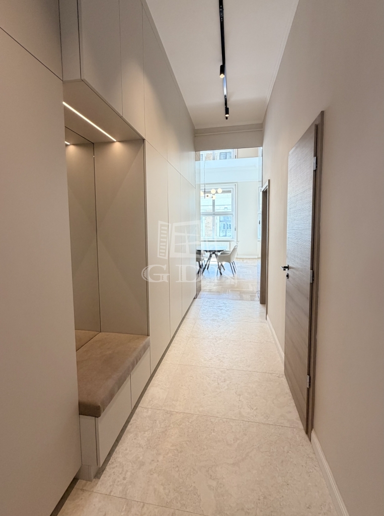 A lakásba lépve egy tágas előtérbe lépünk, ahol beépített tárolószekrény található, innen közelíthető meg a nappali, és a gépesített, jól felszerelt konyha. A nappaliból nyílik a nagyobb hálószoba, a kisebb háló az előtérből közelíthető meg, ablakai a belső udvarra néznek. A lakás a folyosó végén helyezkedik el, így az ablakok előtt nincs átmenő forgalom.