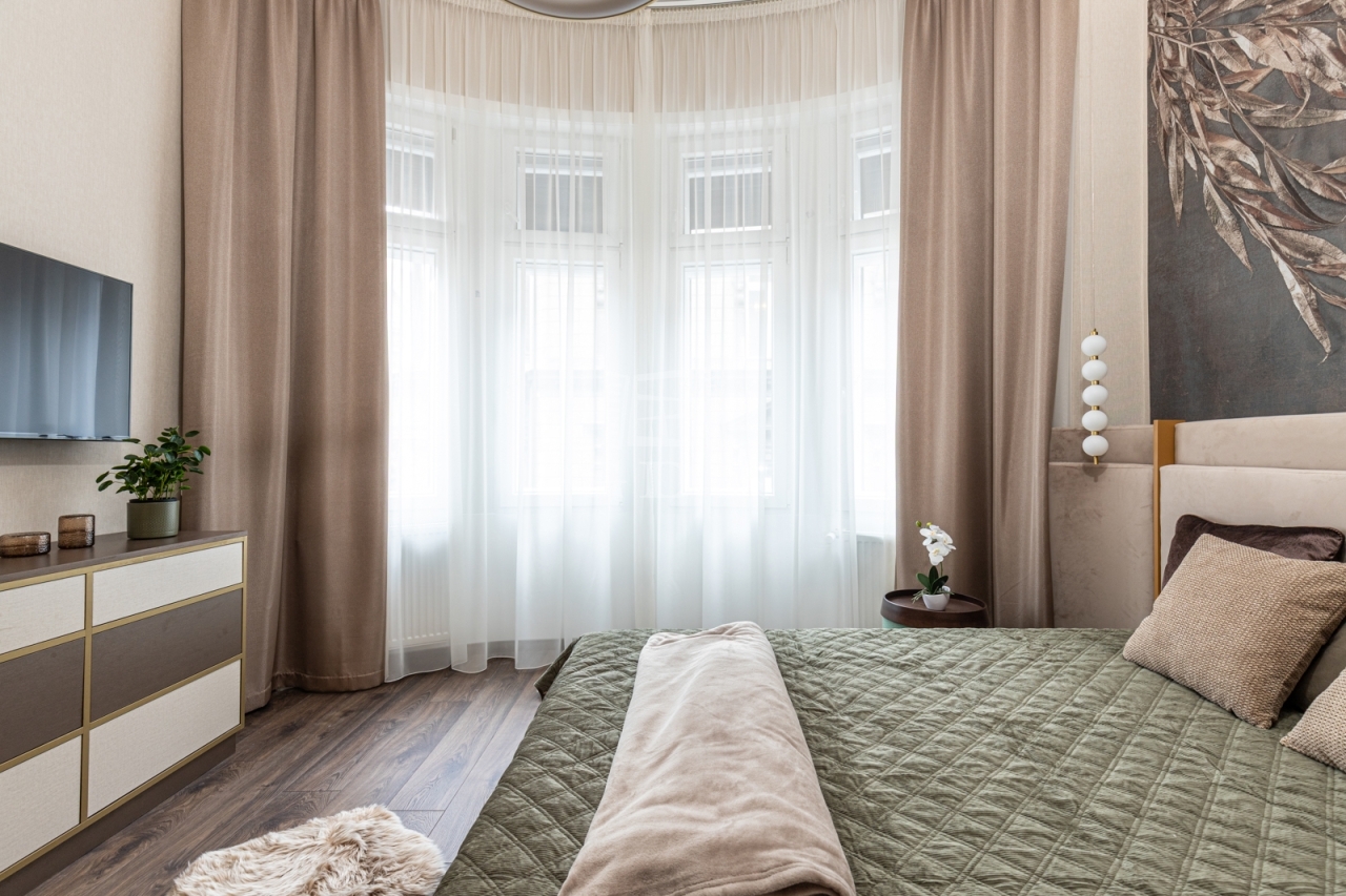 Dohány utca × Síp utca, 3. emelet – utcai nézetű, frissen felújított, lakberendező által tervezett lakás, teljes bútorzattal és felszereléssel.