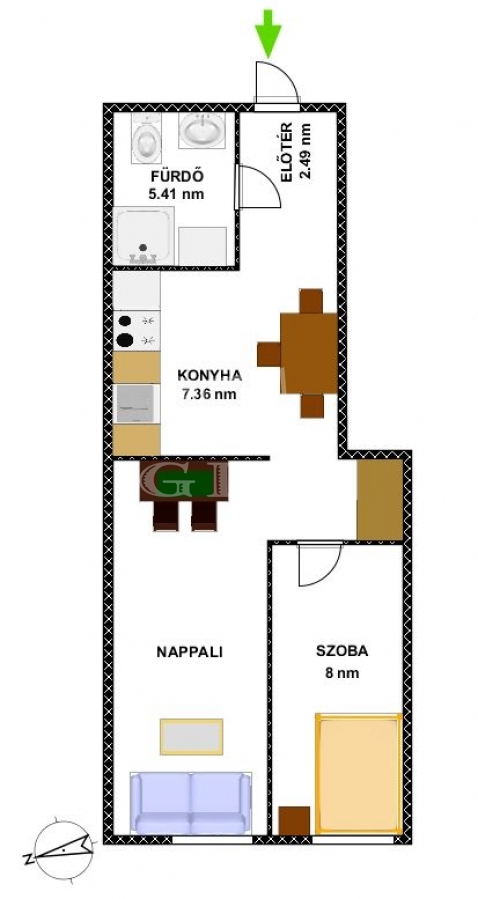 | 36 m2Alapterület | 1 + 1 Szoba |