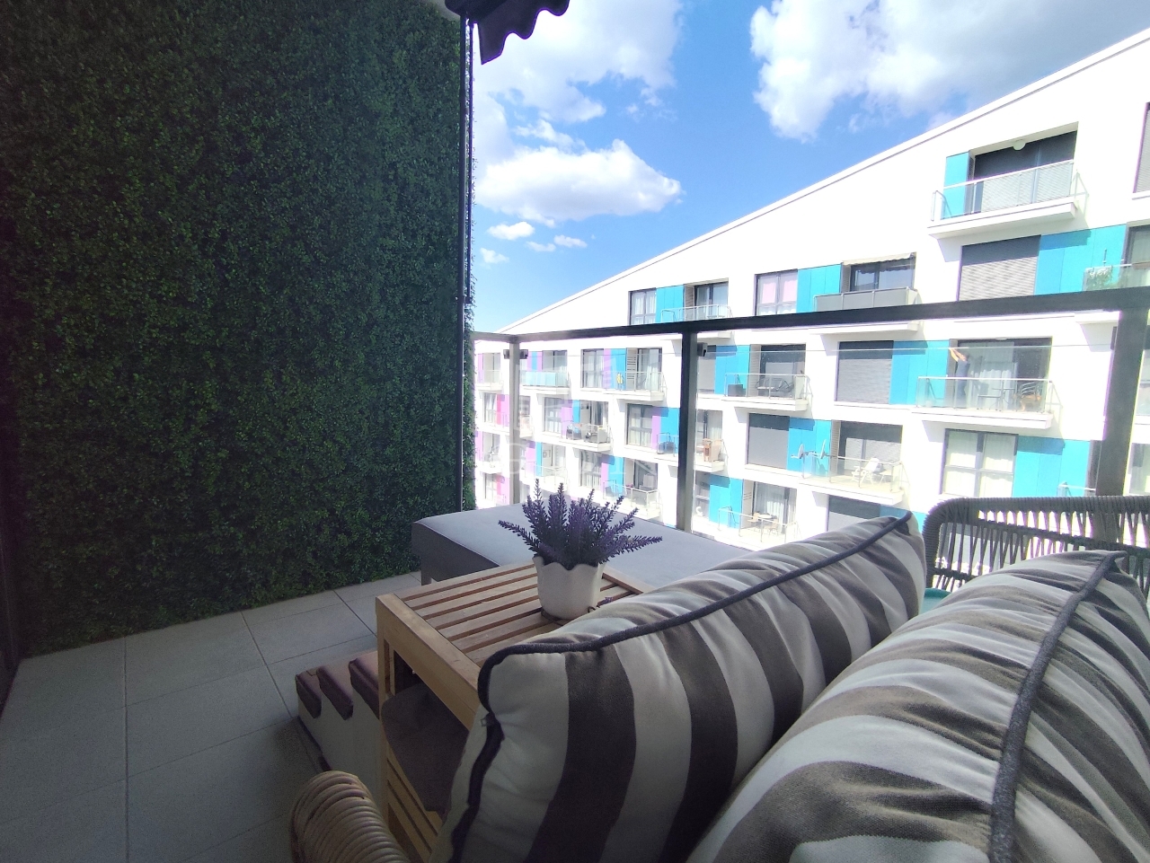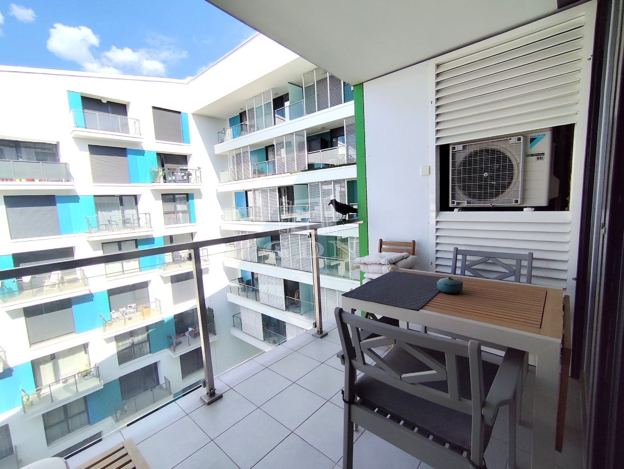 A 2×5 m²-es erkély nem csak plusz négyzetméter – reggeli kávé, esti pihenés, egy kis saját tér a város forgatagához közel.