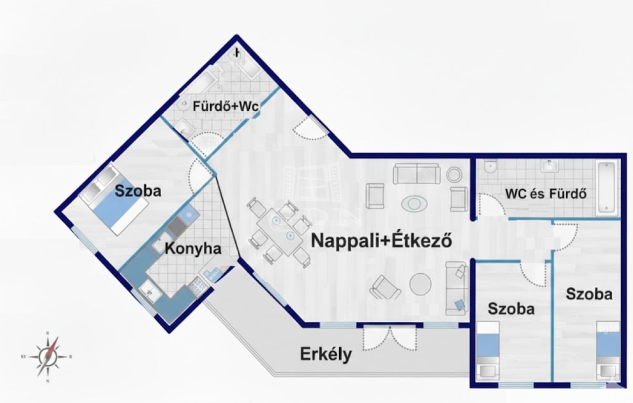 69 m2Alapterület 1 + 3 Szoba