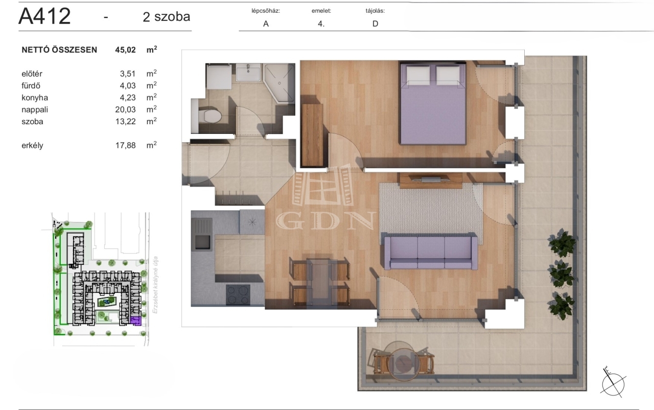 Eladó Lakás (téglaépítésű) Budapest, XIV. kerület - Erzsébet Residence A412