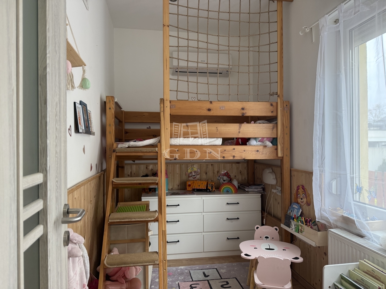 A lakás jó elosztású, világos terekkel rendelkezik: tágas nappali, két külön nyíló szoba (az egyik galériázott), külön WC és kádas fürdőszoba került kialakításra. A konyha egyedileg, asztalos által készített bútorral és beépített gépekkel felszerelt. Az ingatlanban két klíma található, a nyílászárók műanyagok, a burkolatok vízállóak. A bejárati ajtó egyedi gyártású. A lakás 2024-ben teljes felújításon esett át, melynek során a villany- és gázvezetékek is cserére kerültek.