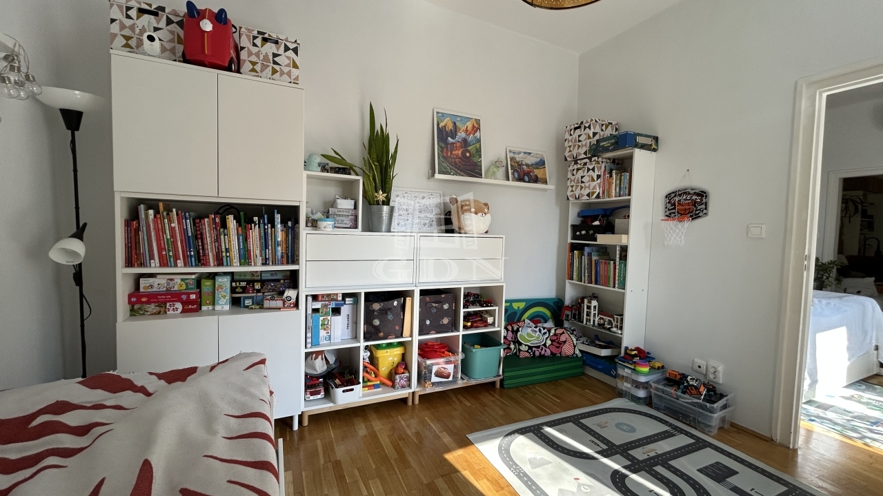 A lakás világos, tágas terekkel rendelkezik, belső, zöld kertre néz, így rendkívül csendes és nyugodt lakókörnyezetet biztosít.