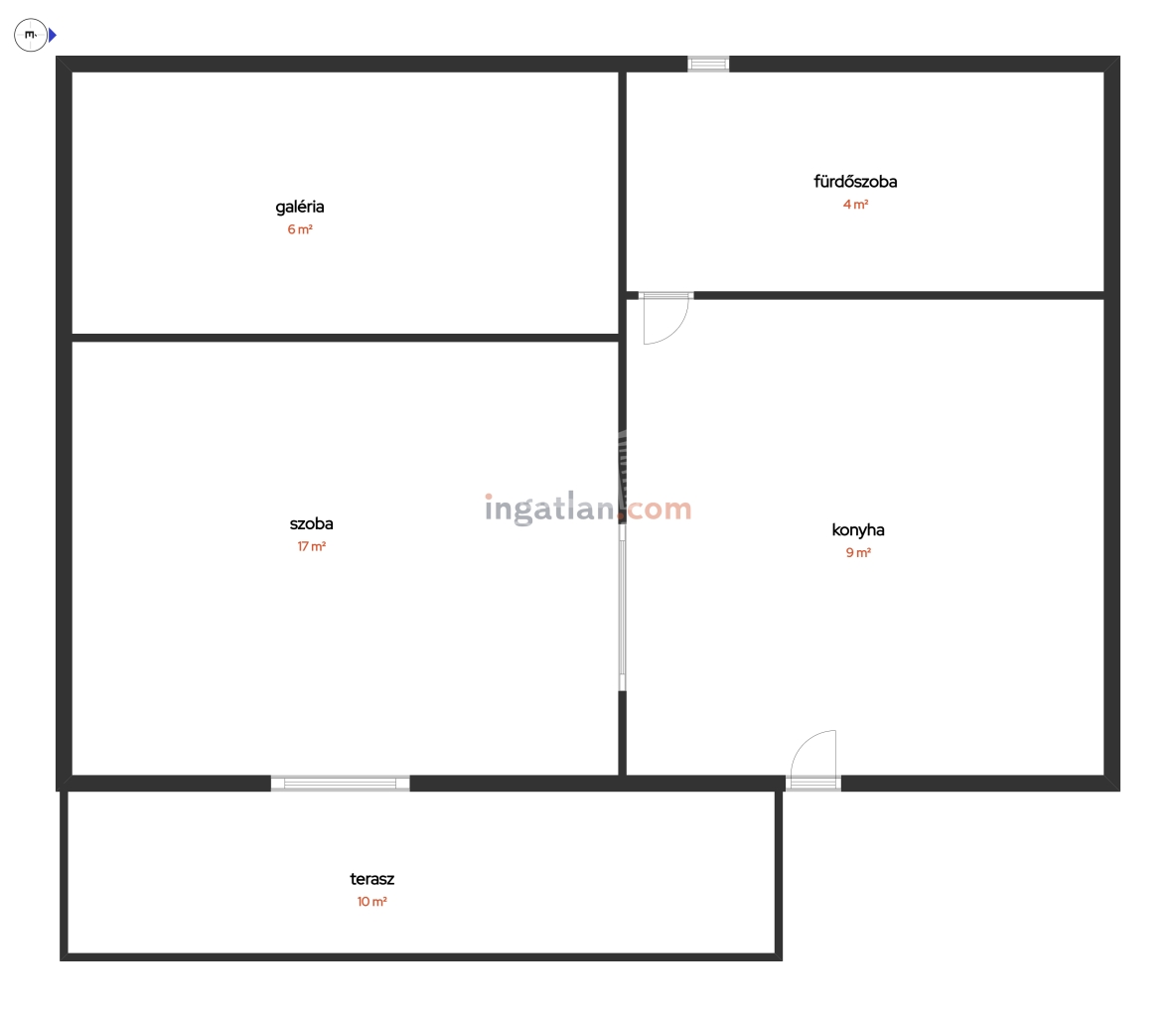 A lakáshoz tartozik egy 10 m2-es, zárt tároló.