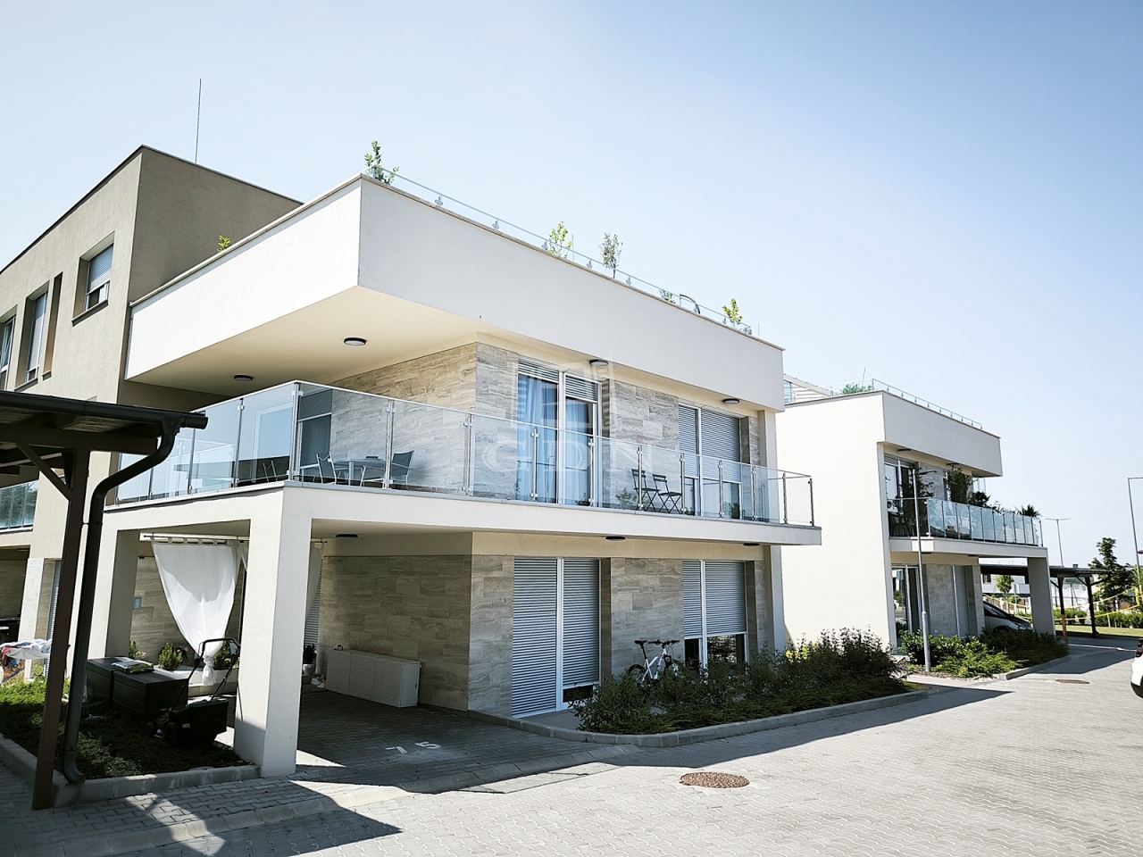 Budapest XVII. kerületében, a Naplás-tó szomszédságában, a Szőlőliget Ökopark szívében várja új tulajdonosát egy exkluzív, 81 m²-es penthouse lakás, amelyhez egy 73 m²-es, panorámás tetőterasz és saját gépkocsibeálló tartozik (+2 M Ft).