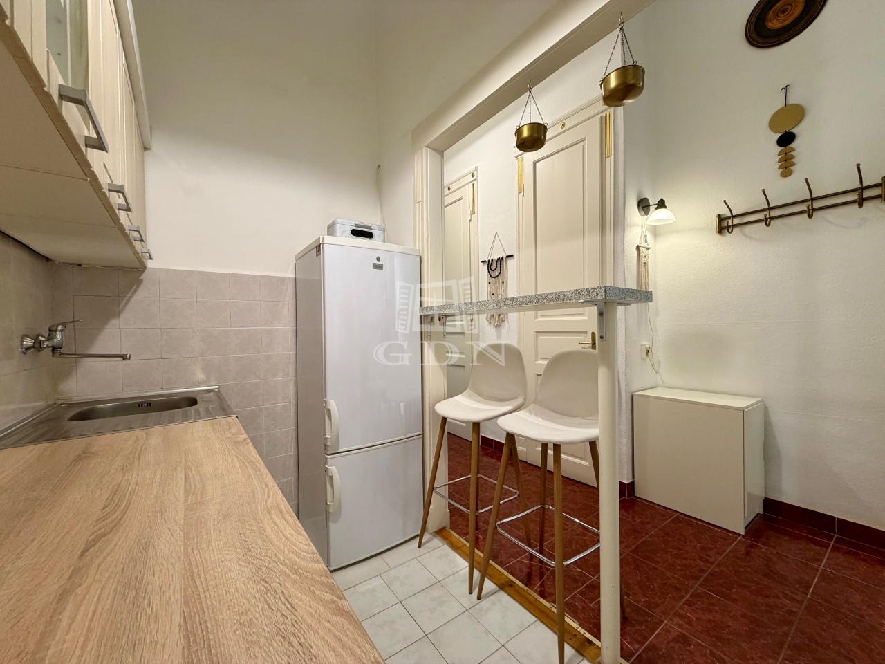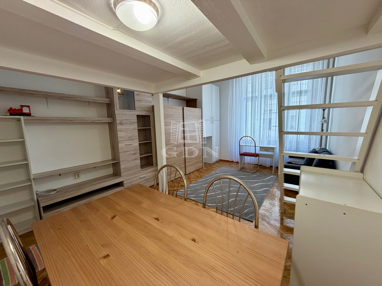 Kiadó Budapesten a belvárosban, a Honvéd utcában lévő, egy szobás, galériás, bútorozott, gépiesített, kis lakás!