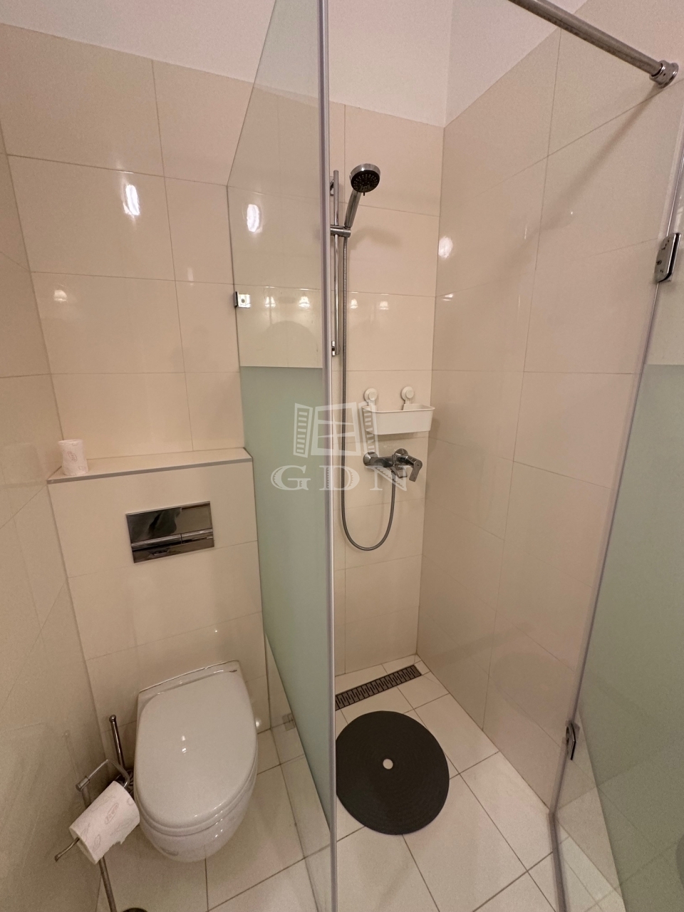Tovább haladva jobbra egy zuhanyzós fürdőszobába jutunk, balra egy főzősarok található, ha egyenesen haladunk, akkor pedig a szobába jutunk.