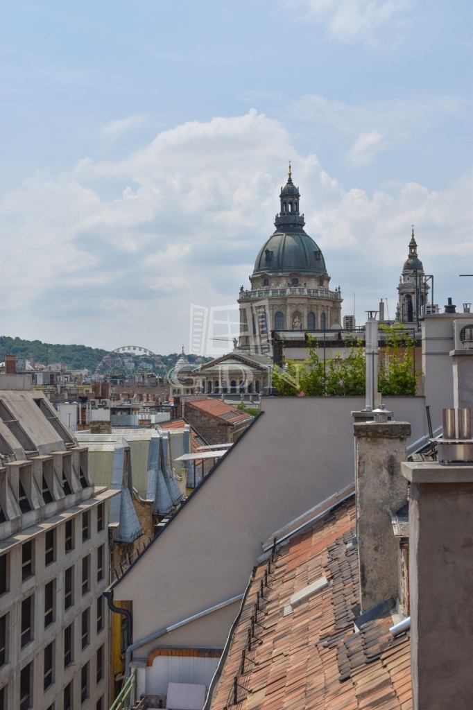 Budapest Belvárosában, az Operánál kiadó egy egyedi kivitelezésű, exkluzív penthouse lakás, teljeskörűen felújított, liftes ház legfelső szintjén, örökpanorámás, privát tetőterasszal.