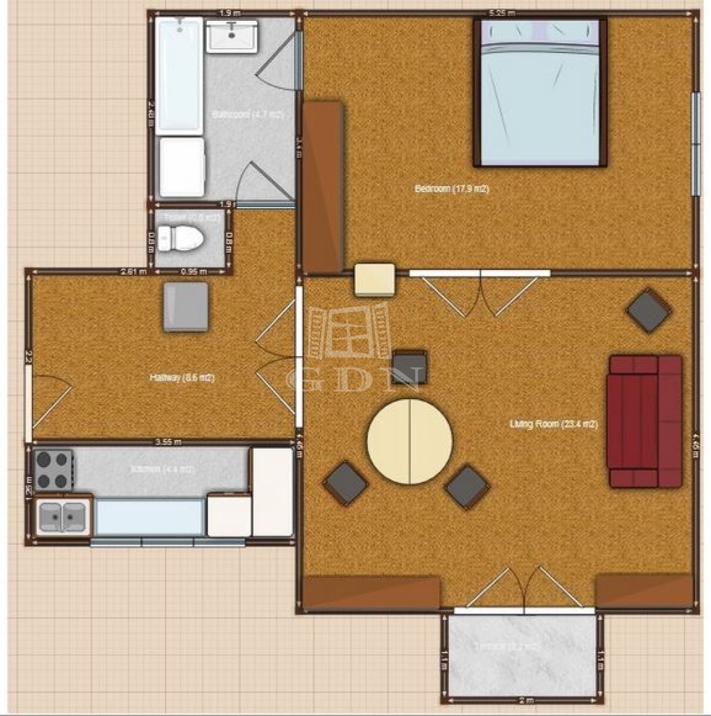 91 m2Alapterület 2 Szoba