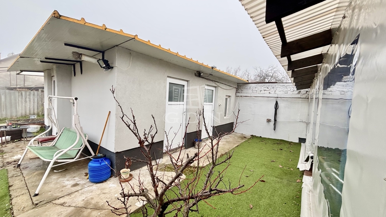 A kényelmesen karban tartható kertben helyet kapott egy fedett gépdcsibeálló, de ezen kívül 1 autó is kényelmesen elfér. Öntözésről egy ásott gyűrűs kút gondoskodik.
