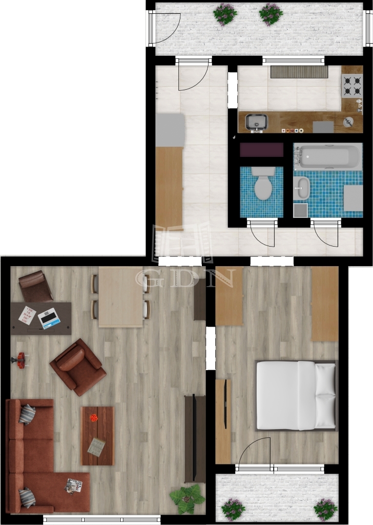48 m2Suprafaţa 2 Camere