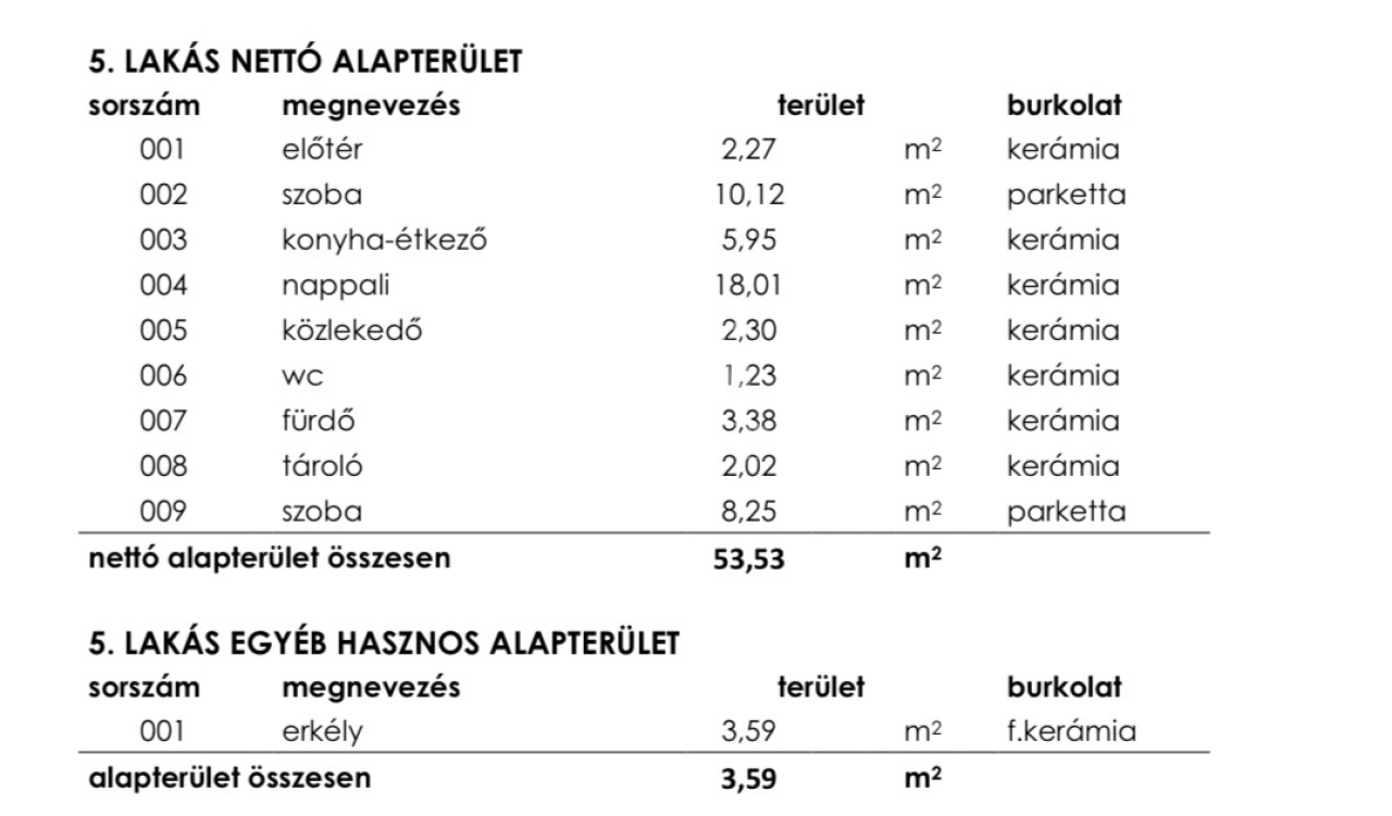 5. lakás 53,5 nm, Emeleti,