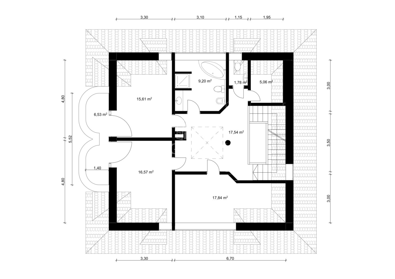 A ház központi eleme egy hangulatos kandalló, amely köré esténként összegyűlhet a család. A kert igazi nyugalomsziget, amely medence építésére is kiválóan alkalmas – egy hely, ahol gyerekzsivaj, nyári esték és baráti összejövetelek kelnek majd életre.