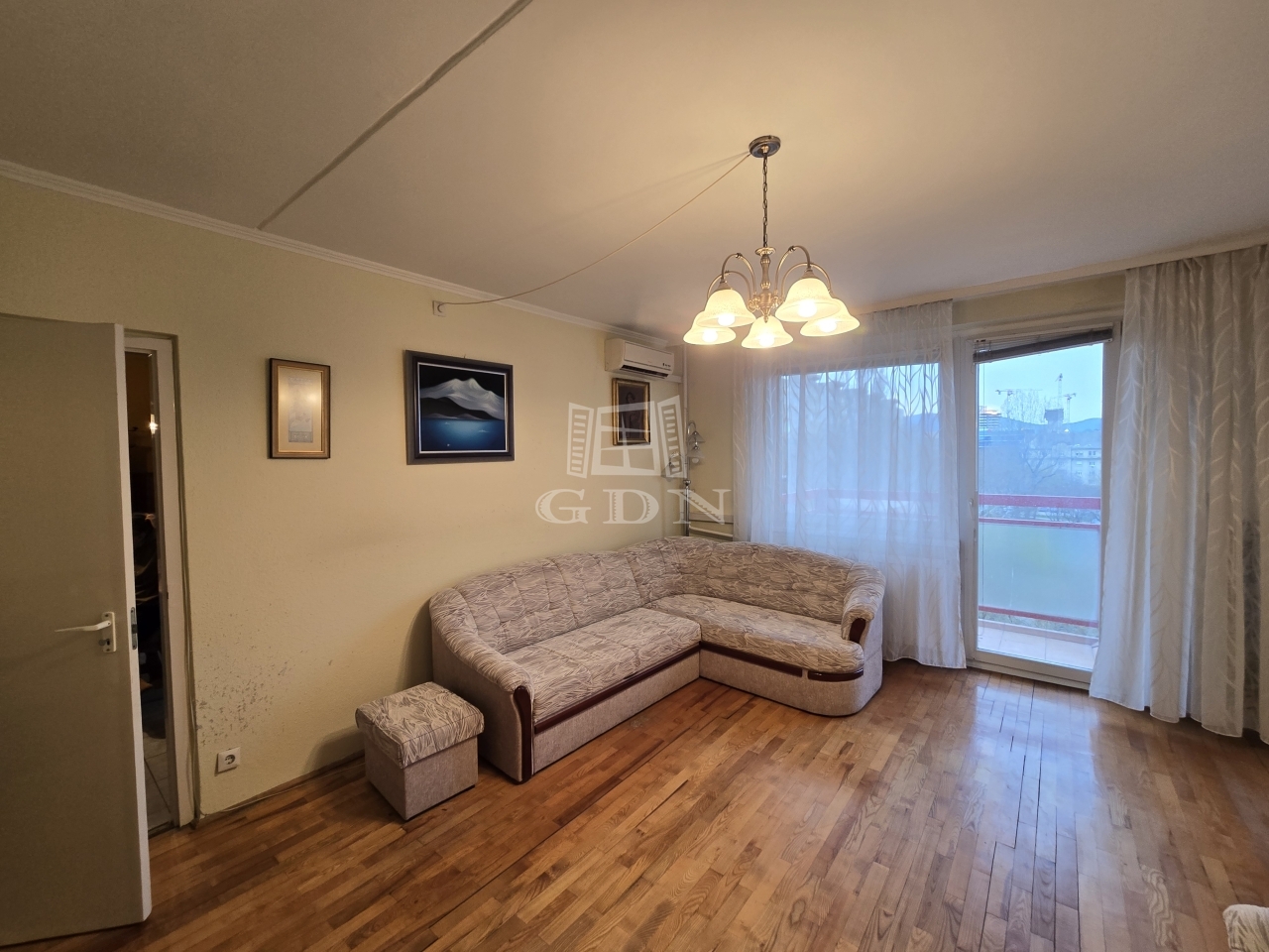 XIII. kerületben, a Duna Plázánál eladó egy 58 m2-es, ERKÉLYES (4 m2), 1 szobás+2 félszobás + ebédlő, CSENDES, VILÁGOS, közepes állapotú, panorámás lakás.