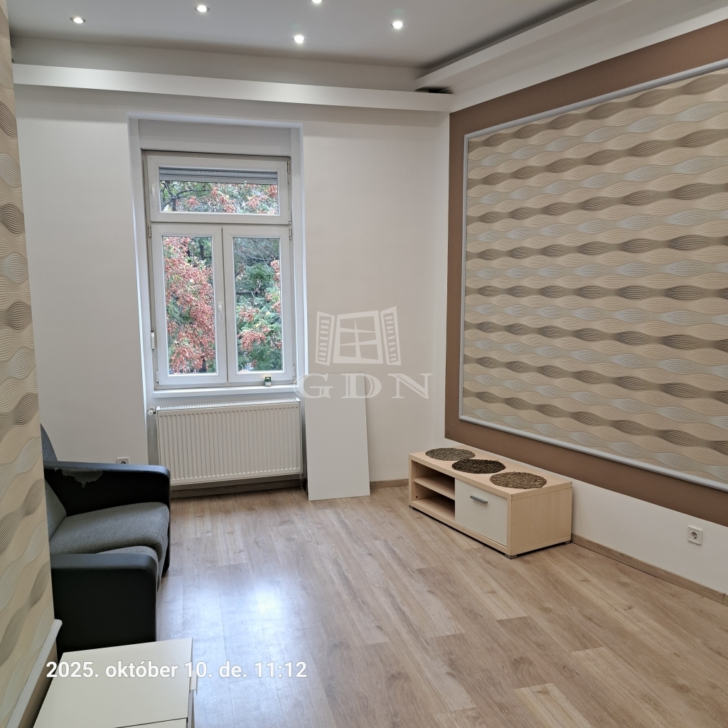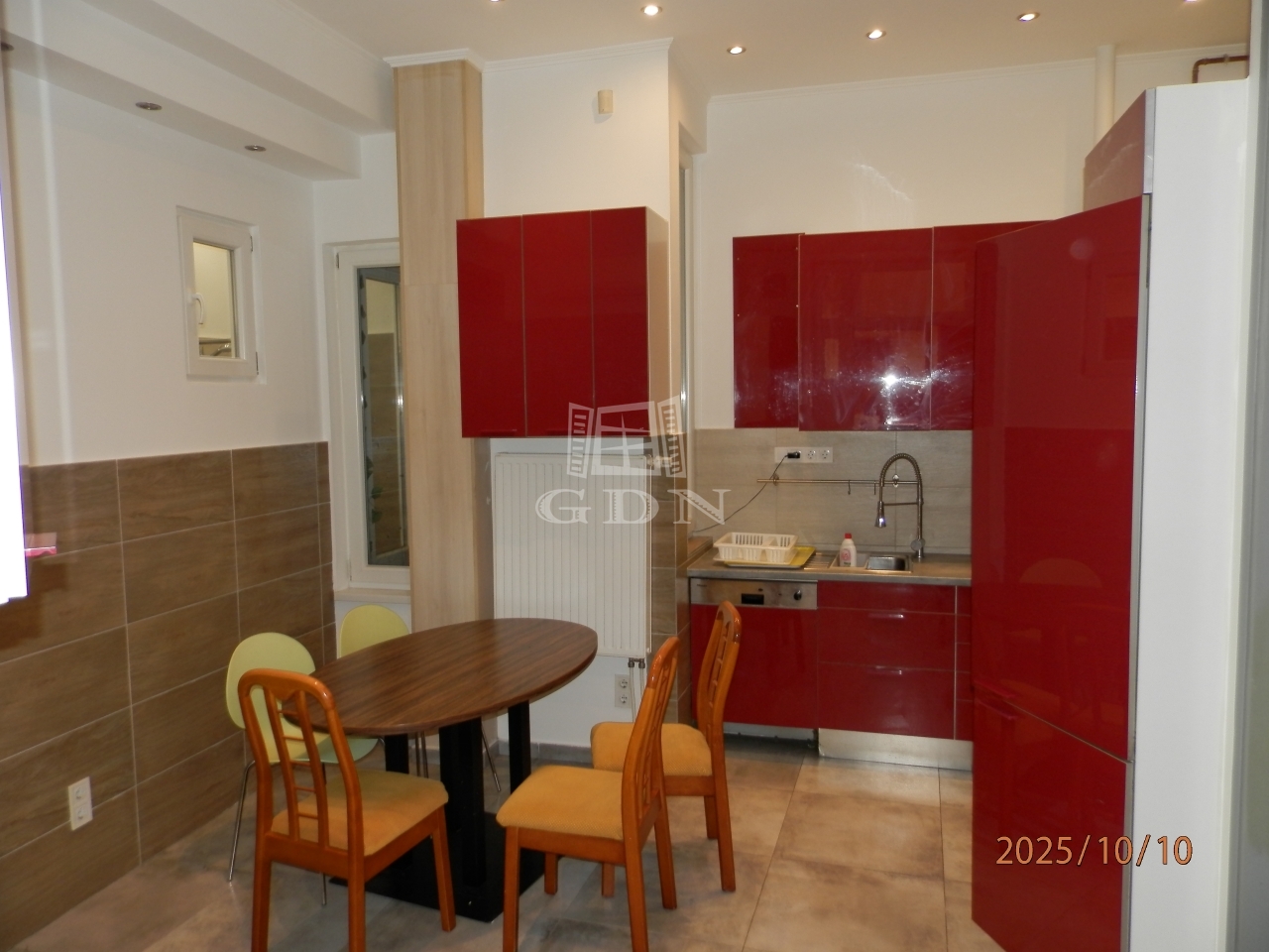 A 58 m²-es lakás tágas, világos, két fürdőszobás, akár két külön bérlő számára is ideális.