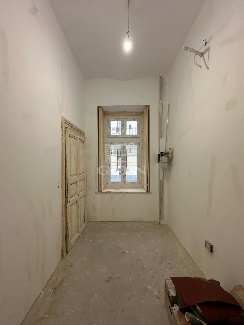 A burkolás és festés előkészítése megtörtént, így a végső színek és burkolatok még szabadon választhatók – az új tulajdonos saját ízlésére formálhatja a tér végső hangulatát.
