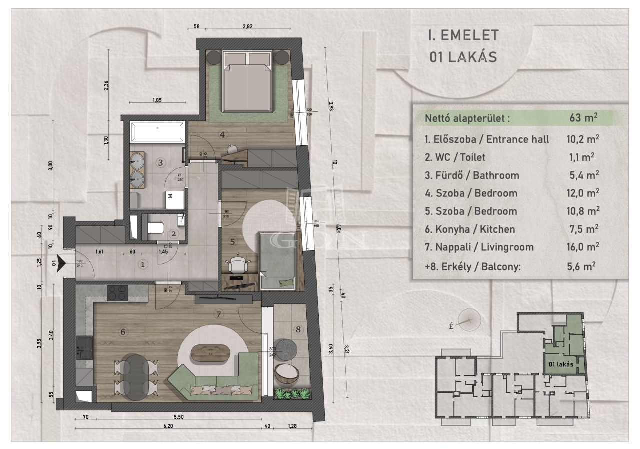 • Magas hozamú befektetés: keresett lokáció, erős bérleti piac