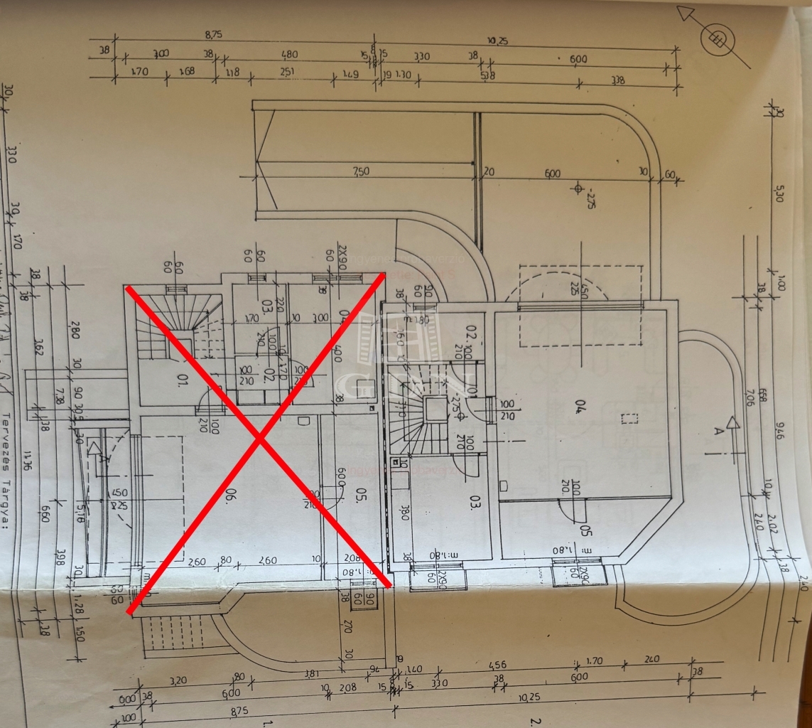 -Pince: közlekedő+lépcsőház(10,23m2), garázs(49,56m2), kazánház+tároló(12,54m2), tároló(5,28m2).